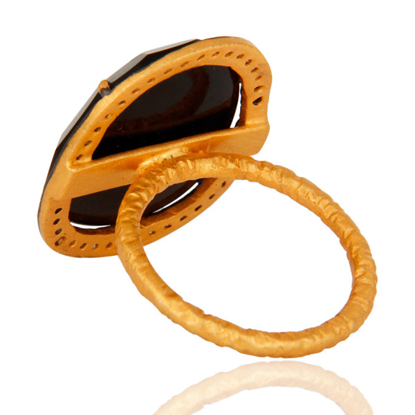 как выглядит 18K Gold Plated Sterling Silver Natural Black Onyx Gemstone CZ Ring Jewelry фото