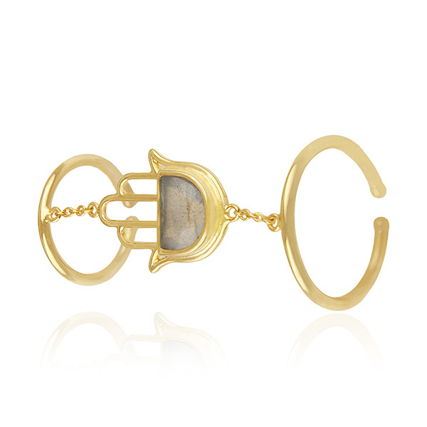 как выглядит Labradorite Gemstone 925 Silver Gold Plated Hamsa Hand Design Finger Ring фото