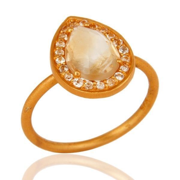 как выглядит Natural Citrine White Topaz Gold Plated 925 Sterling Silver Bride Ring Jewelry фото