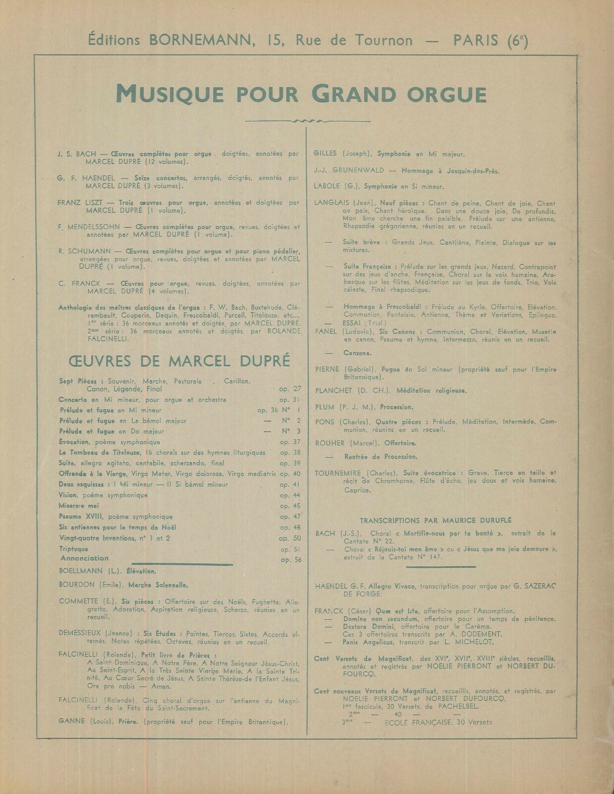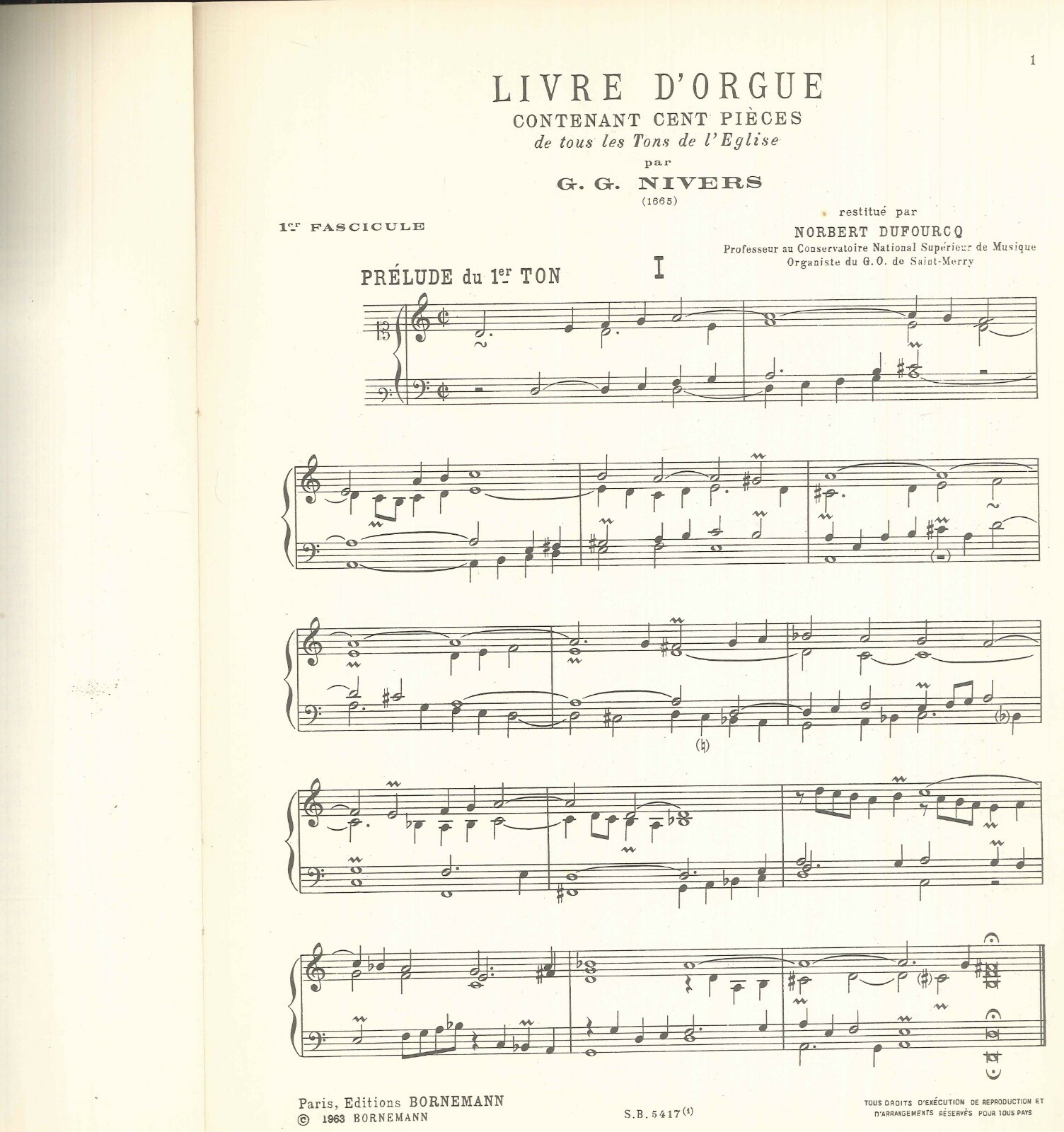 Nivers Premier Liver d' Orgue Organ Songbook 1963 Dufourcq Prelude Fugue
