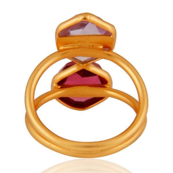 Amethyst Pink Corundum Gemstone 18K Gold Plated Silver Ring Women's Jewelry