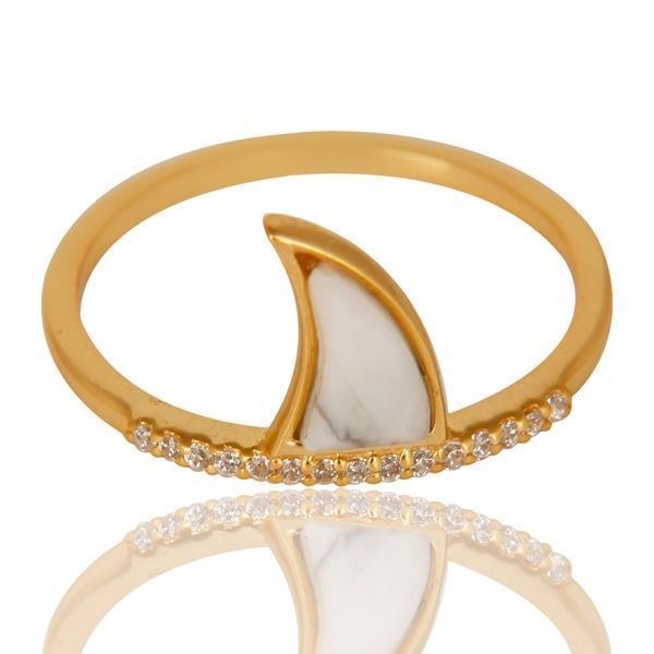 Howlite Cz Gemstone Horn Design 925 Silver Gold Plated Adjustable Rings