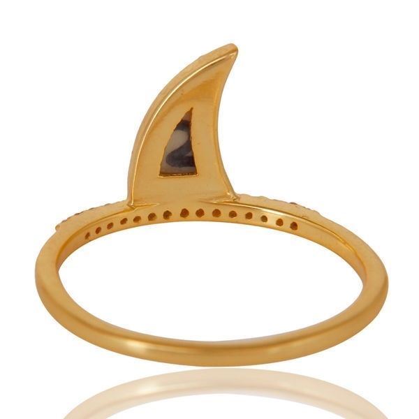 как выглядит Howlite Cz Gemstone Horn Design 925 Silver Gold Plated Adjustable Rings фото