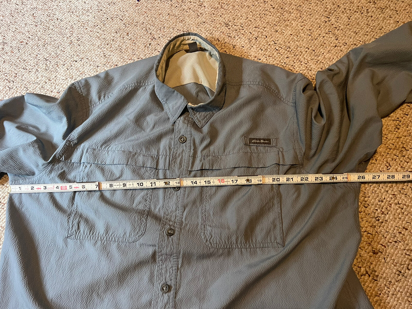 как выглядит Eddie Bauer Mens Long Sleeve Button Up Shirt Blue White Creped Pattern- XXL фото