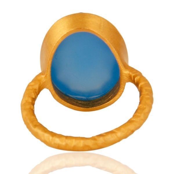 Yellow Gold Plated 925 Silver Blue Chalcedony Gemstone Women's Rings