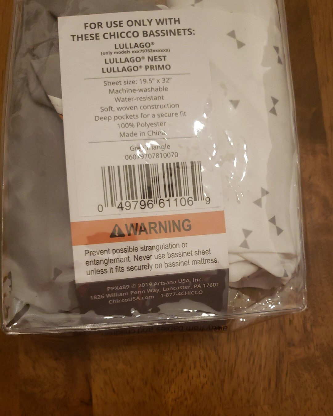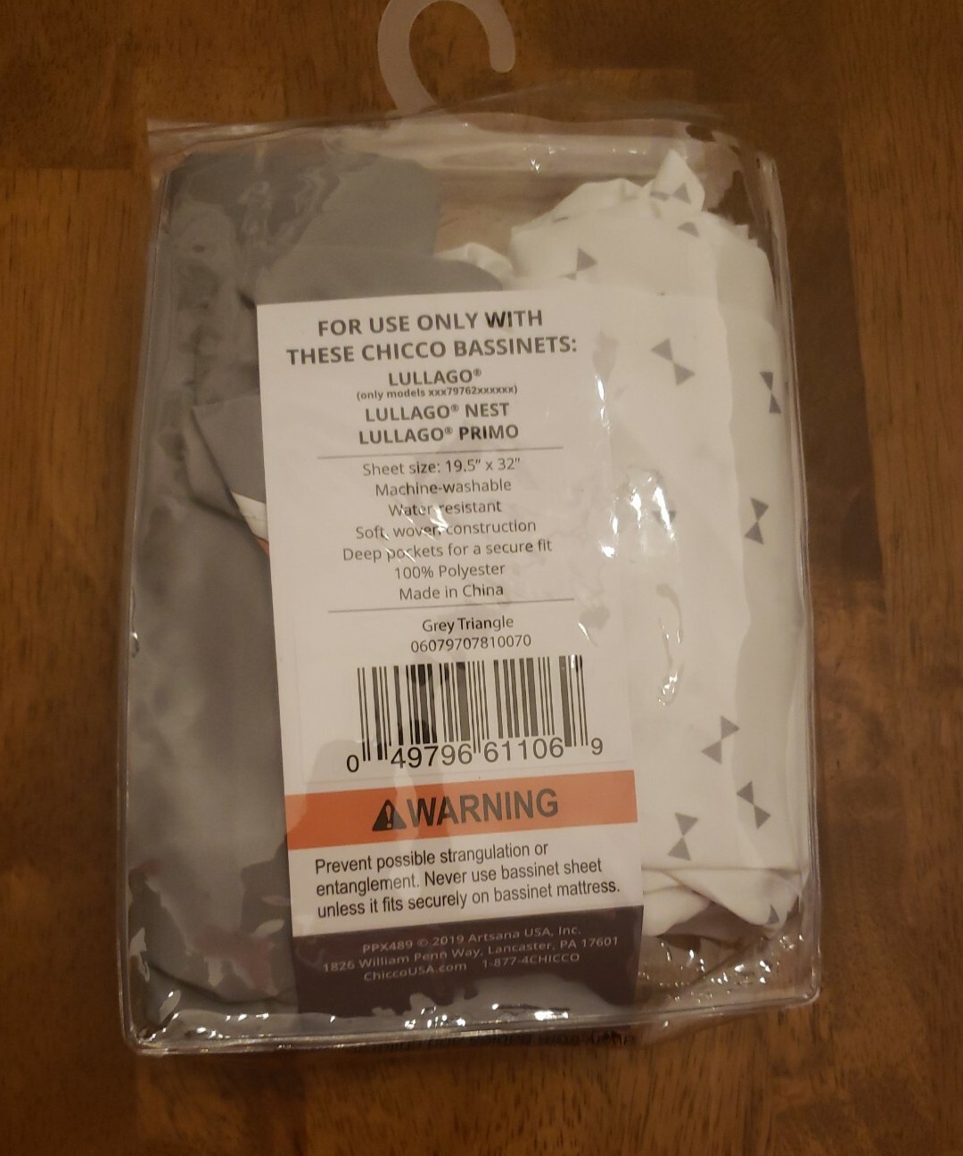 Chicco 2 Pack LULLAGO Bassinet FITTED SHEETS 1 Gray,1 print NEW Water Resistant