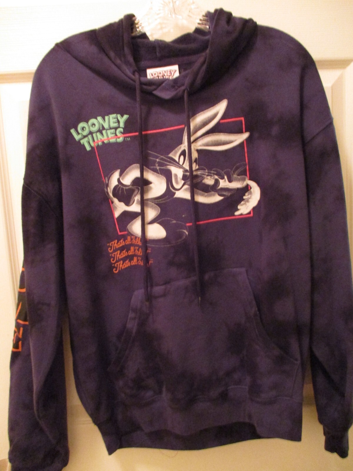как выглядит RARE Vintage Looney Tunes Mens Medium All Over Print Hoodie - Bugs, Taz, Daffy фото