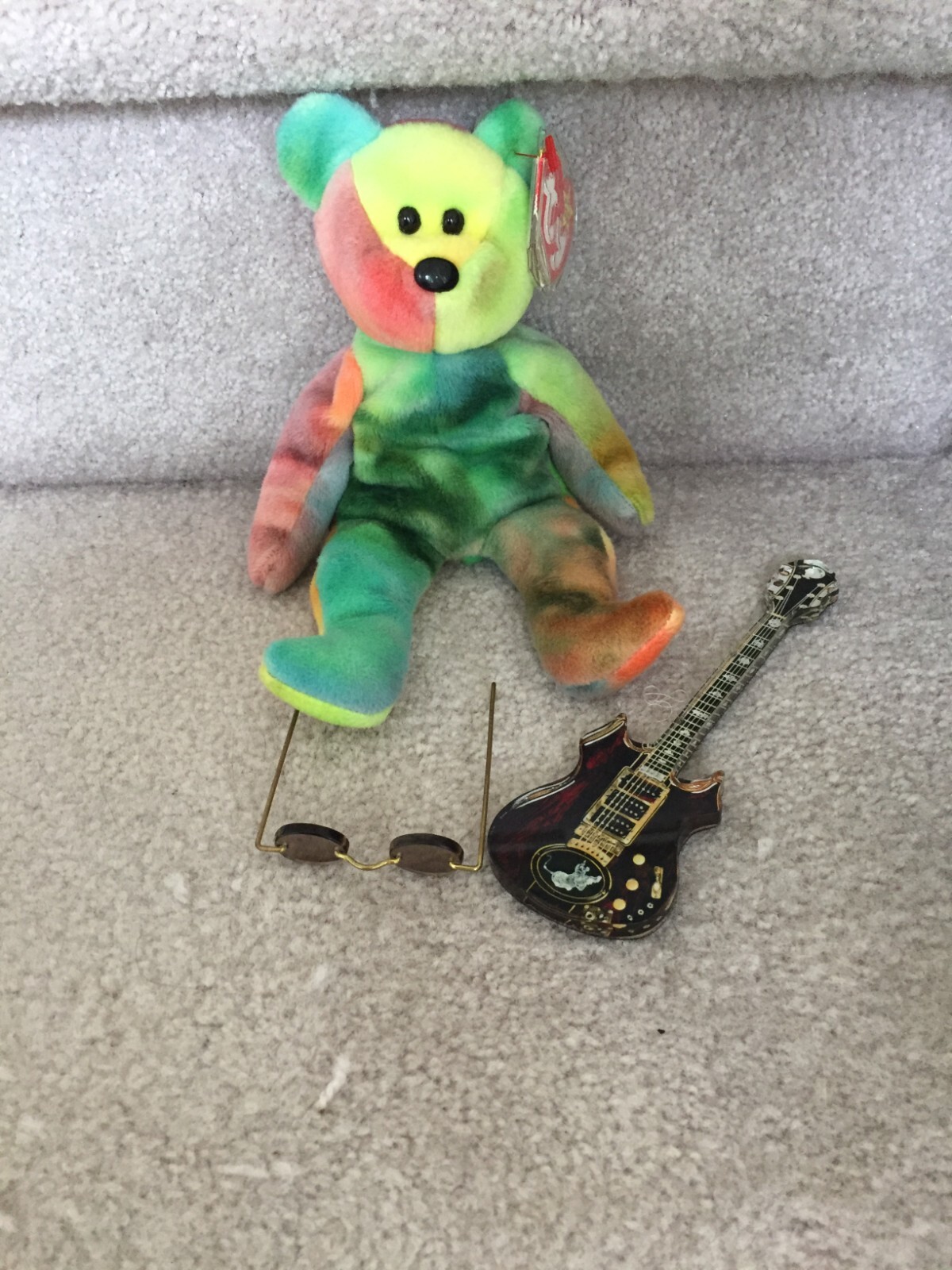 как выглядит Rare Ty Garcia Beanie Baby 4051 w/Glasses Guitar, PVC, 1993 with Errors MWMT фото