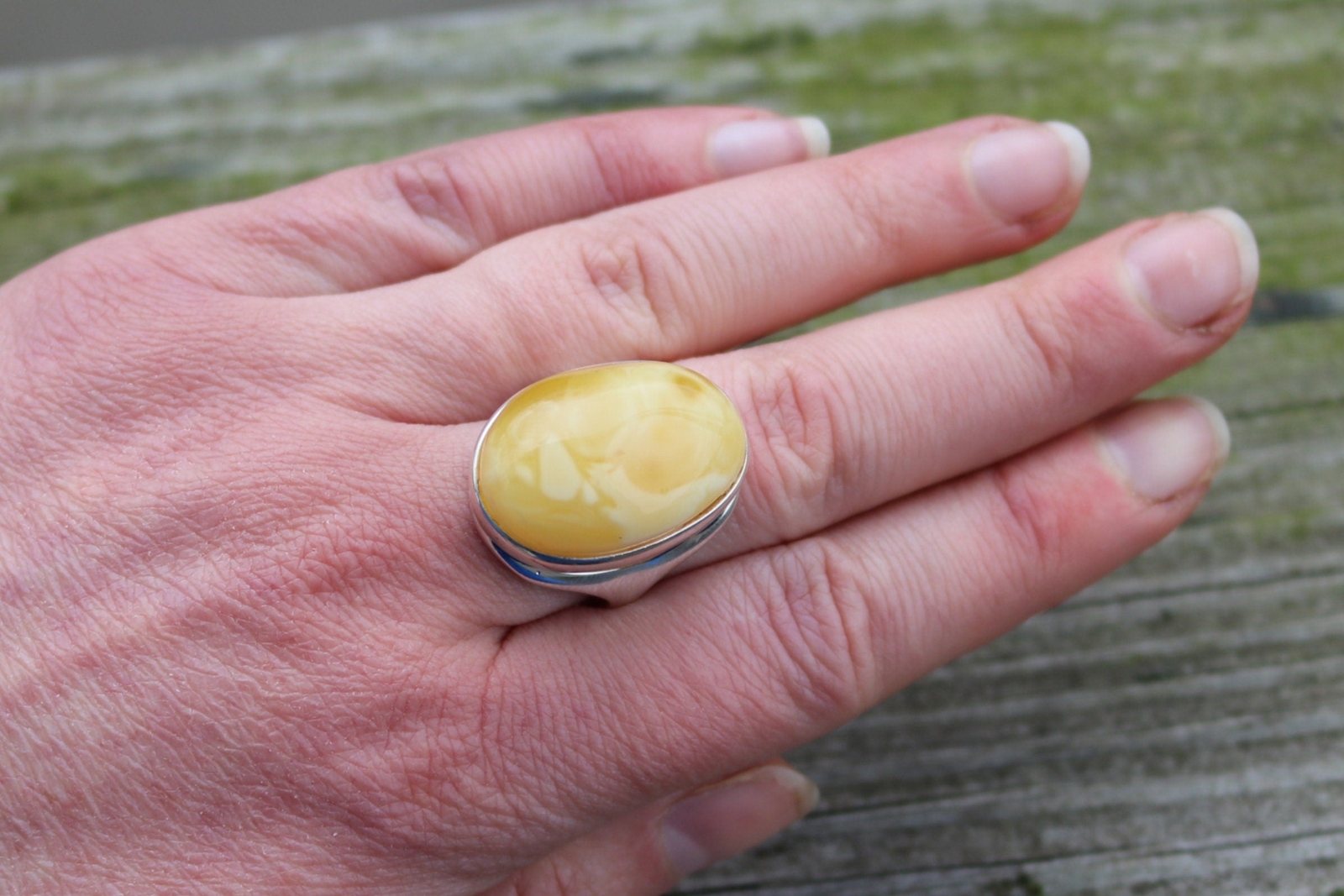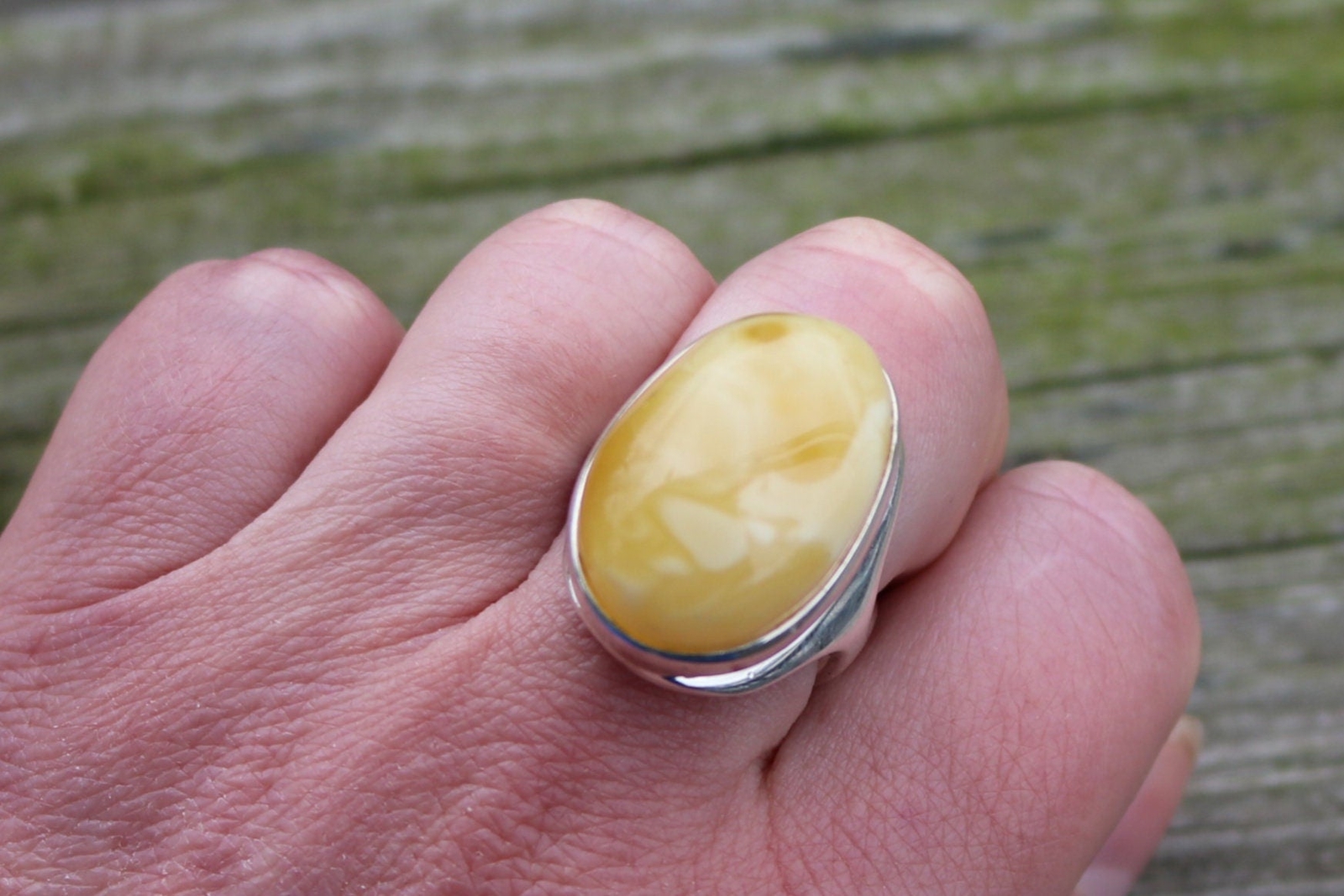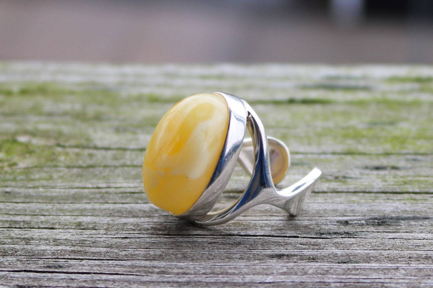 как выглядит Baltic Amber Butterscotch Ring Oval Adjustable 925 Silver 14.2 gram фото