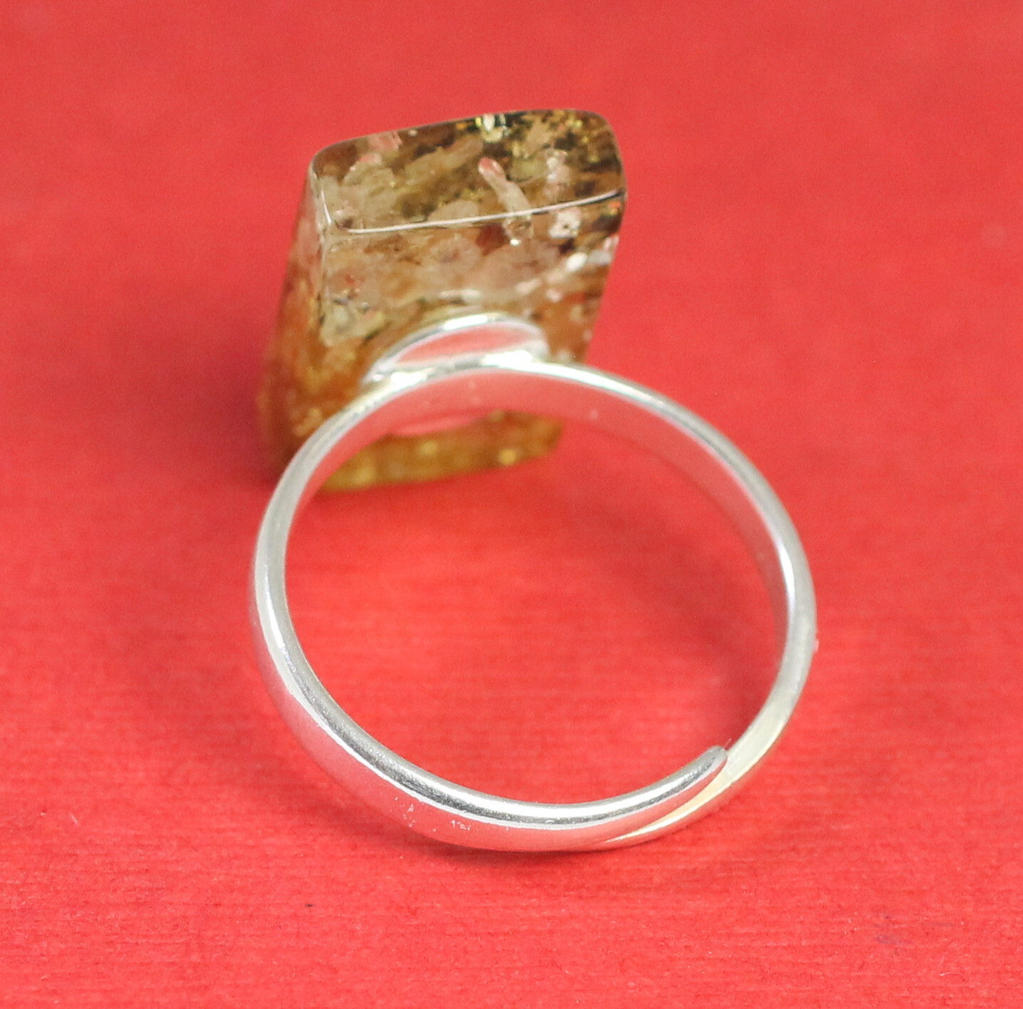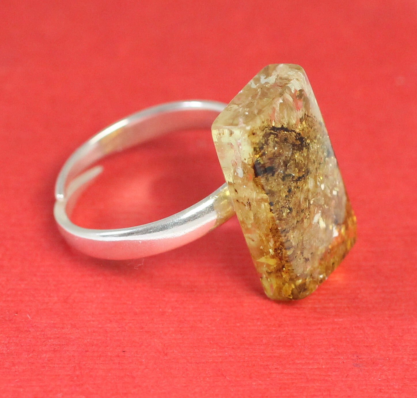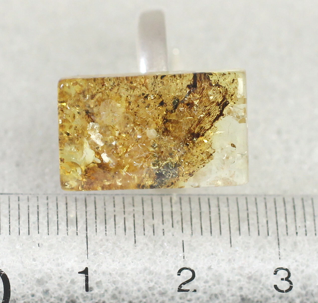Natural Baltic Amber Ring - Sparkle Lemon Rectangular Amber Piece Silver Plated