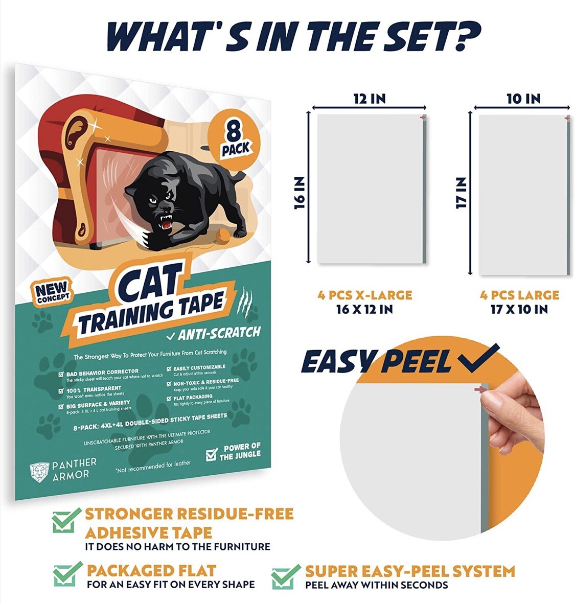 Panther Armor Cat Scratch Deterrent Tape-8 Pack-Double Sided Anti-scratching
