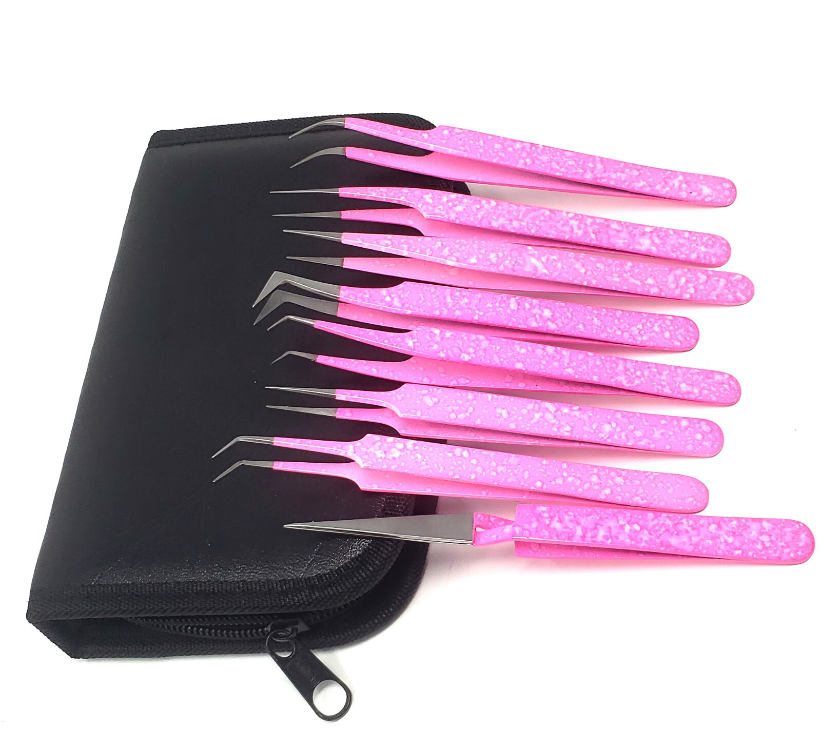 8 Pcs Eyelash Extension Tweezers Straight Curved Stainless Steel Set w/ Case