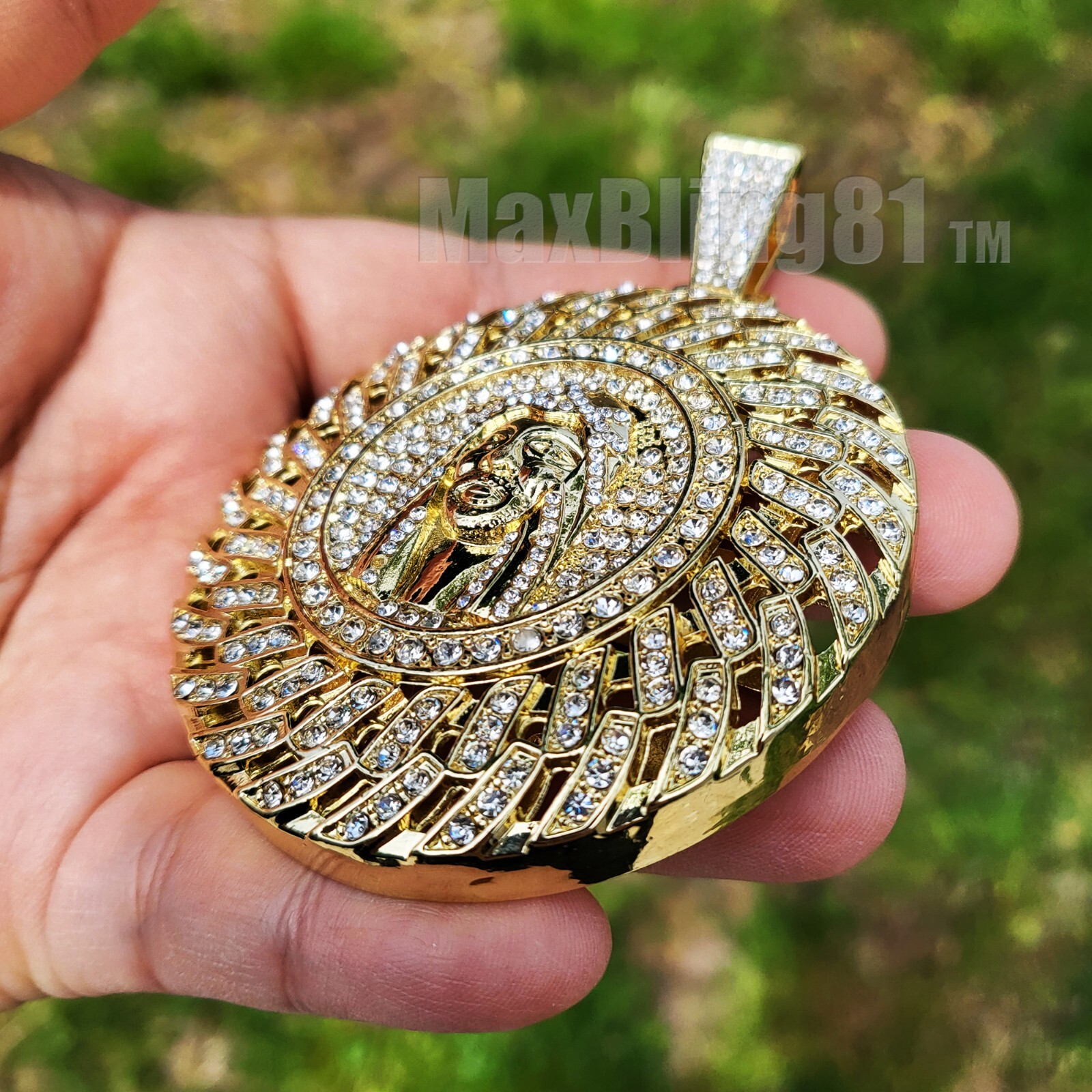 как выглядит HIP HOP ICED GOLD PLATED LARGE JESUS FASHION MEDAL CUBIC ZIRCONIA CHARM PENDANT фото