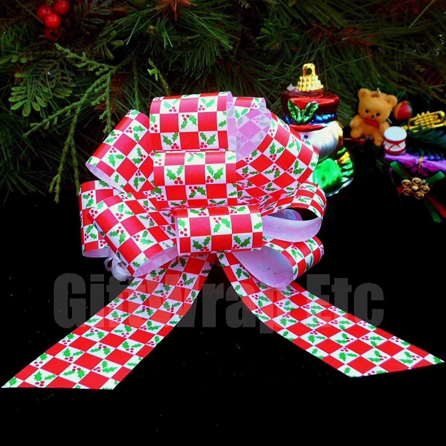 Assorted Christmas Gift Pull Bows - 5 Wide, Set of 50, Red, Green, Gold, Stars