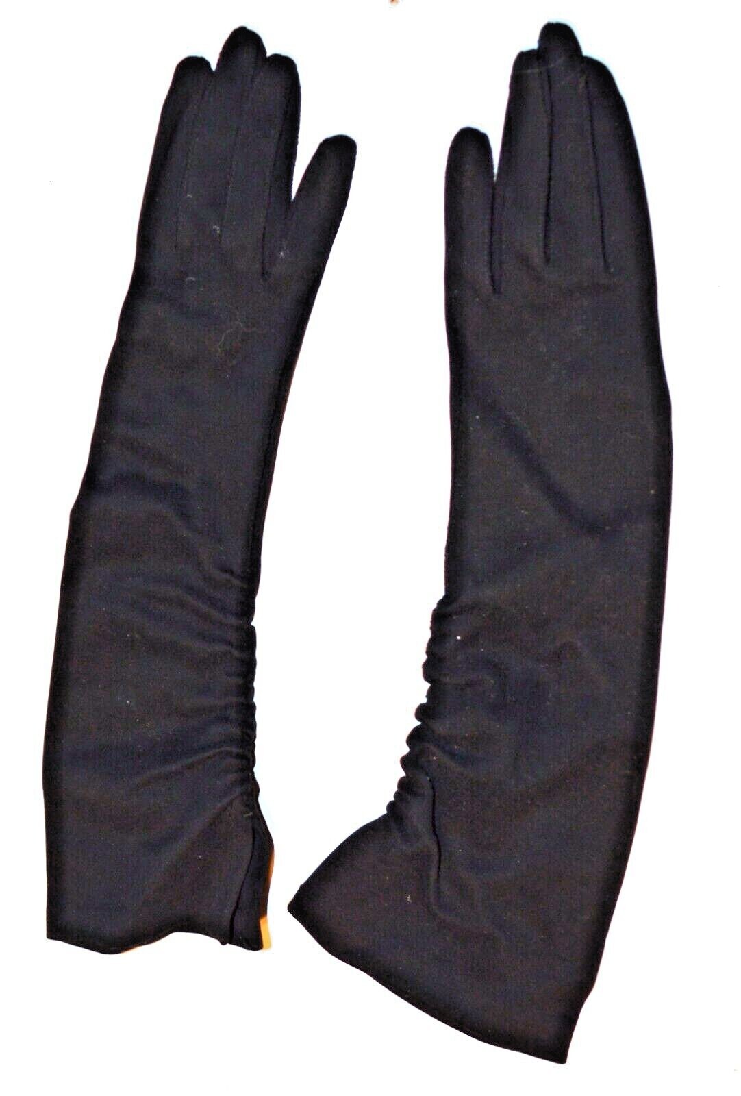 как выглядит VTG. BLACK ARIS 100 COTTON IMPORTED SHIRRED EVENING GLOVES - SIZE 7 / WASHABLE фото