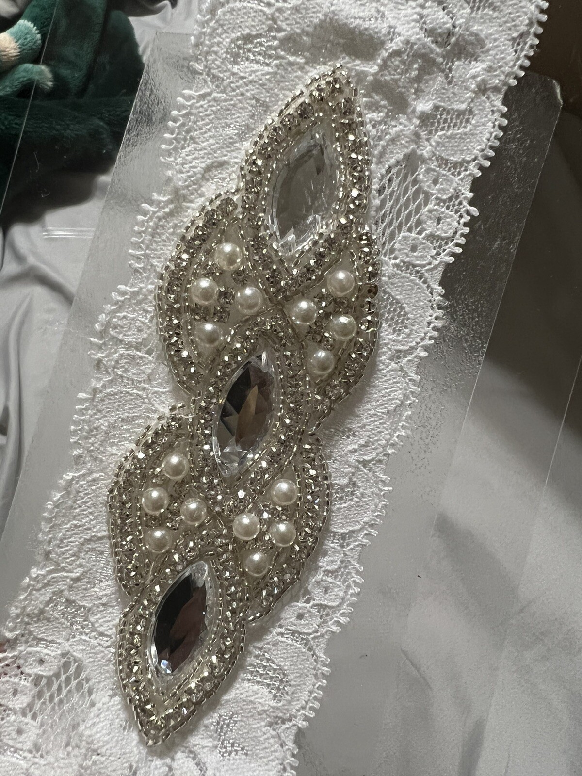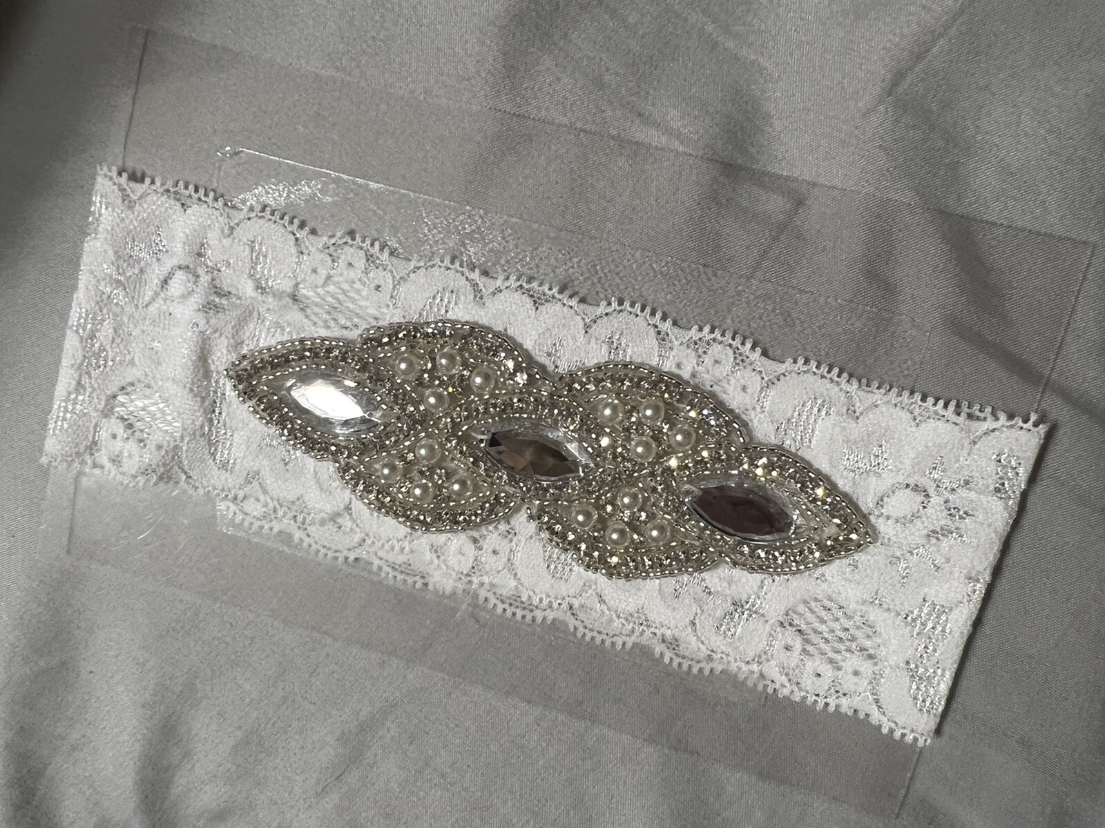как выглядит NEW WHITE SOFT LACE DIAMOND BRIDES WEDDING BRIDAL GARTER PARTY TOSS фото