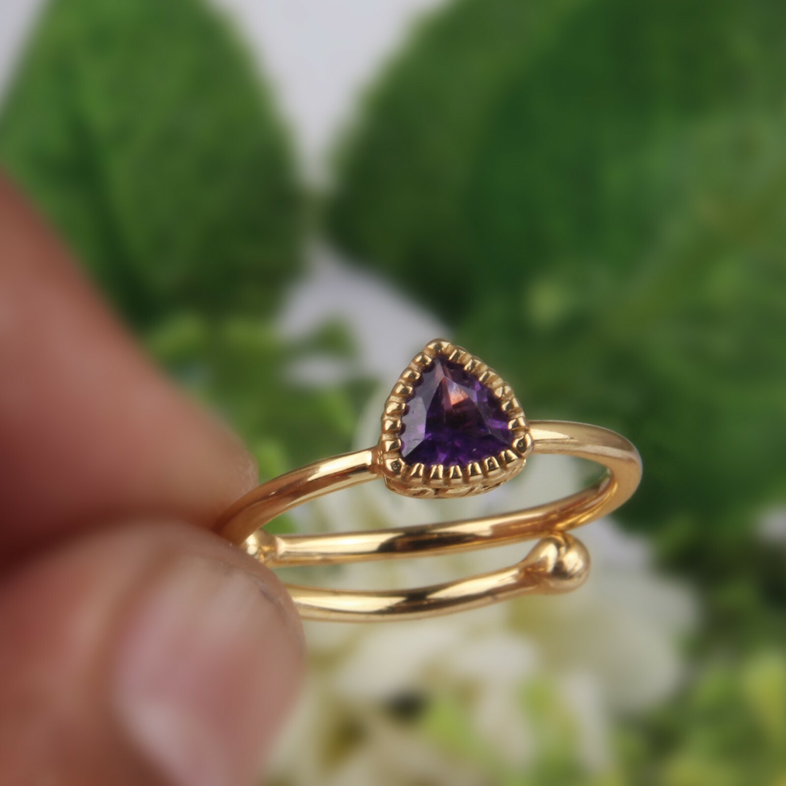 Natural Amethyst Gemstone 18k Gold Plated Adjustable Engagement Women Rings