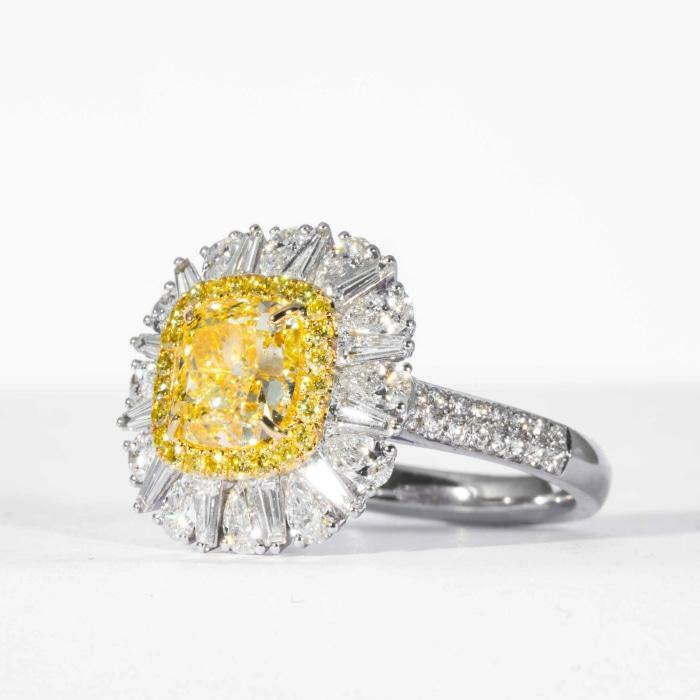 как выглядит 2.35CT Cushion Cut Yellow Citrine With Bright White CZ Cluster Engagement Ring фото