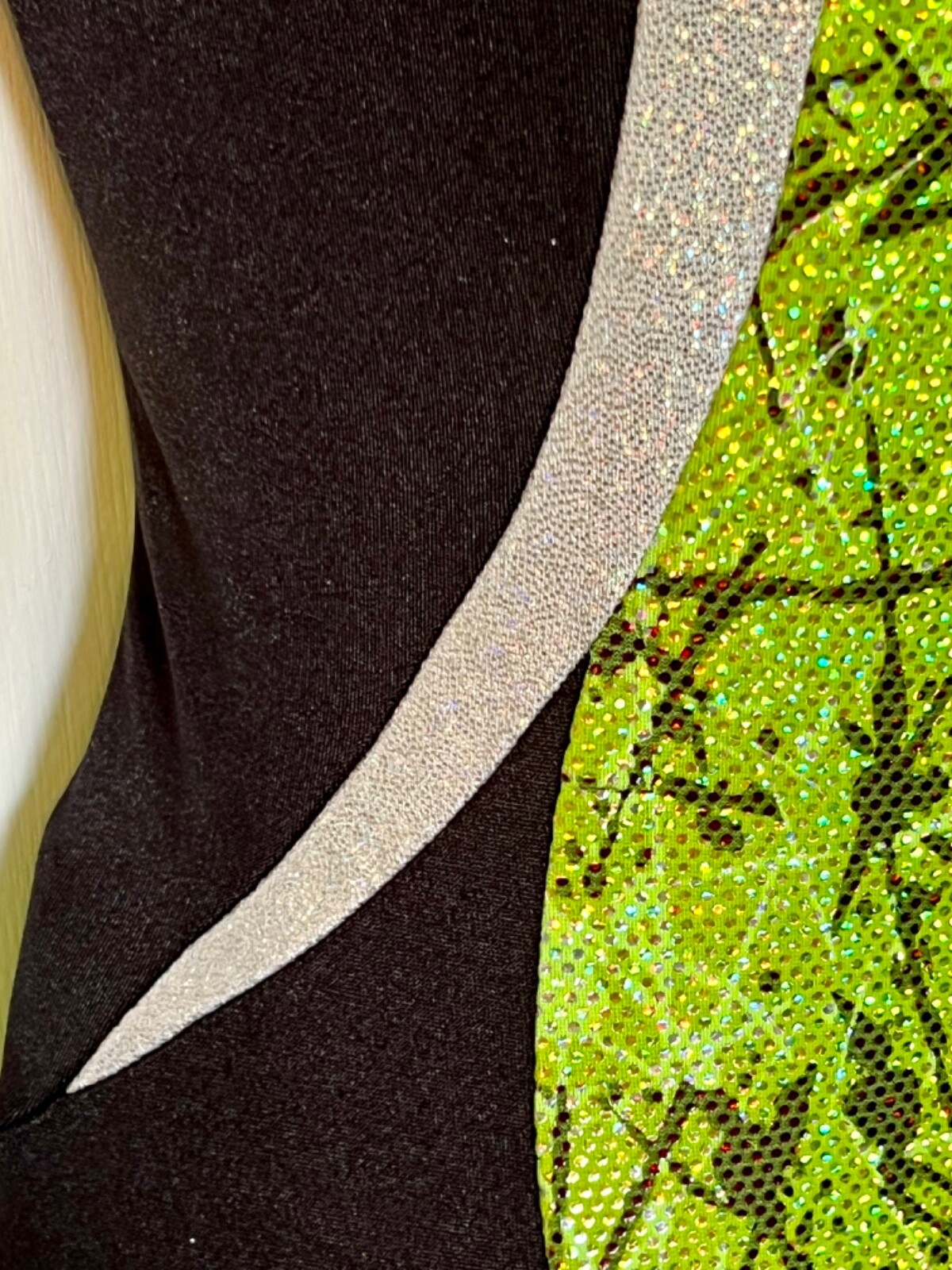 как выглядит GK LIME CONFETTI ADULT X-SMALL WHITE SPARKLE BLACK GYMNASTICS DANCE LEOTARD AXS фото