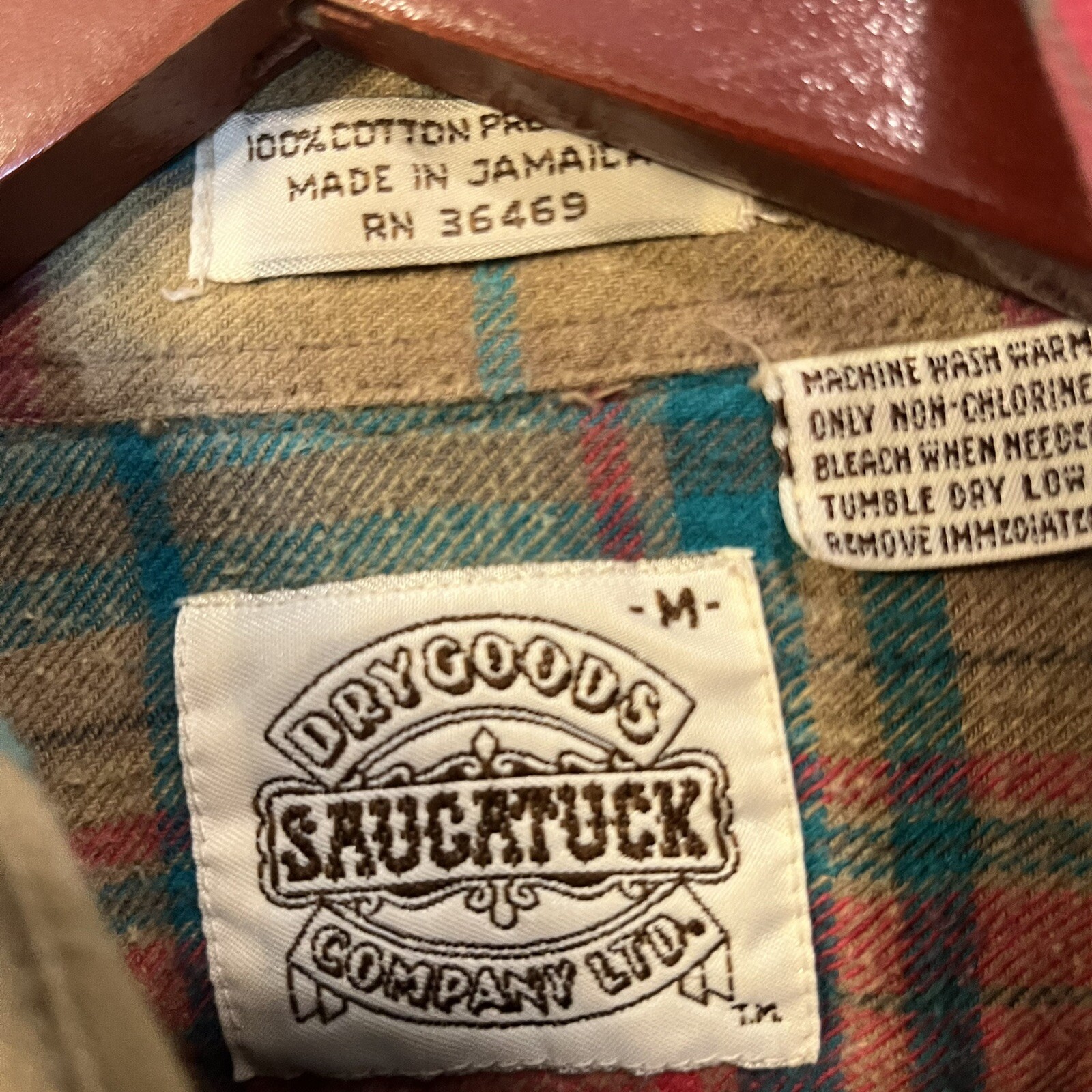 Vintage Dry Goods Saugatuck Company Mens Red Green Plaid FLANNEL Shirt SZ M