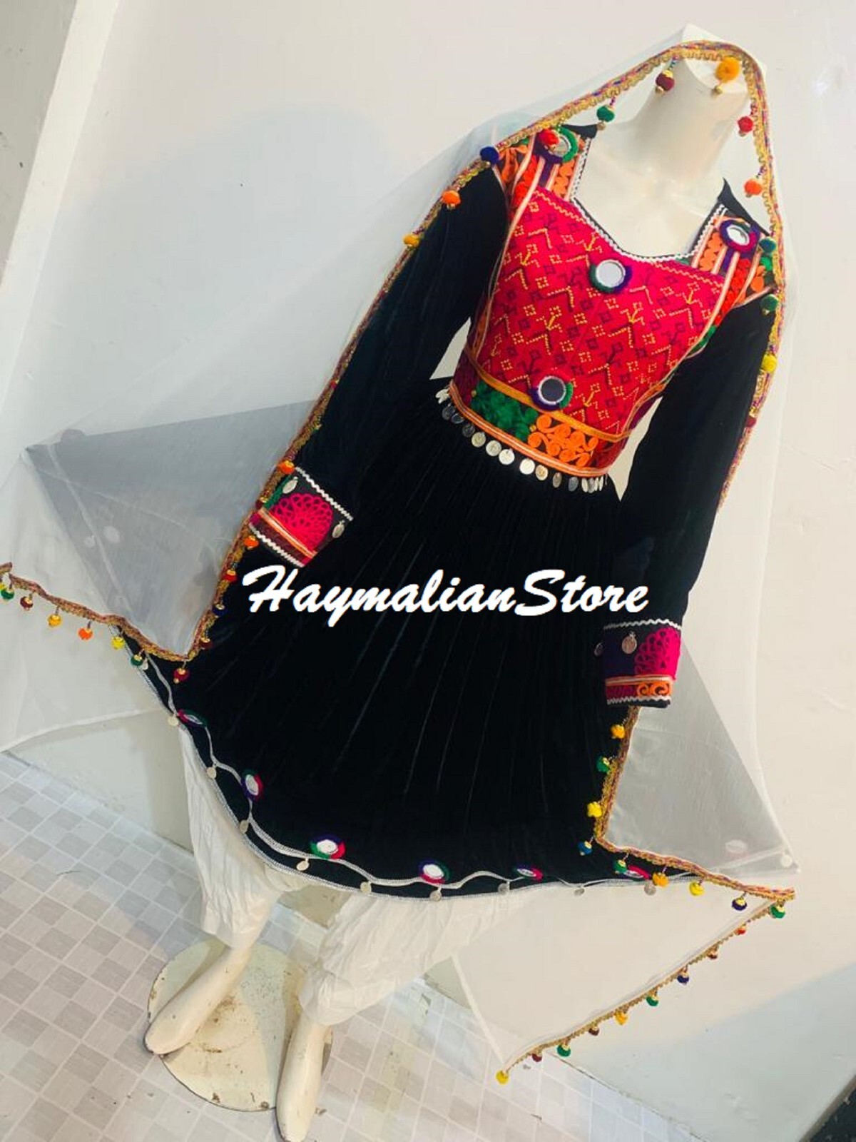Afghan Kuchi party Traditional Three pieces Black and White color Dress