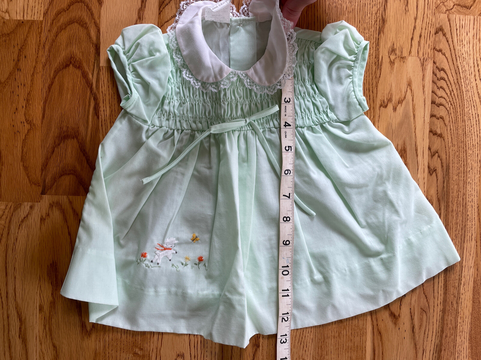 как выглядит Vintage Girls Baby Clothes Dress And Bloomers Embroidered Lace 80s 90s Sheep фото