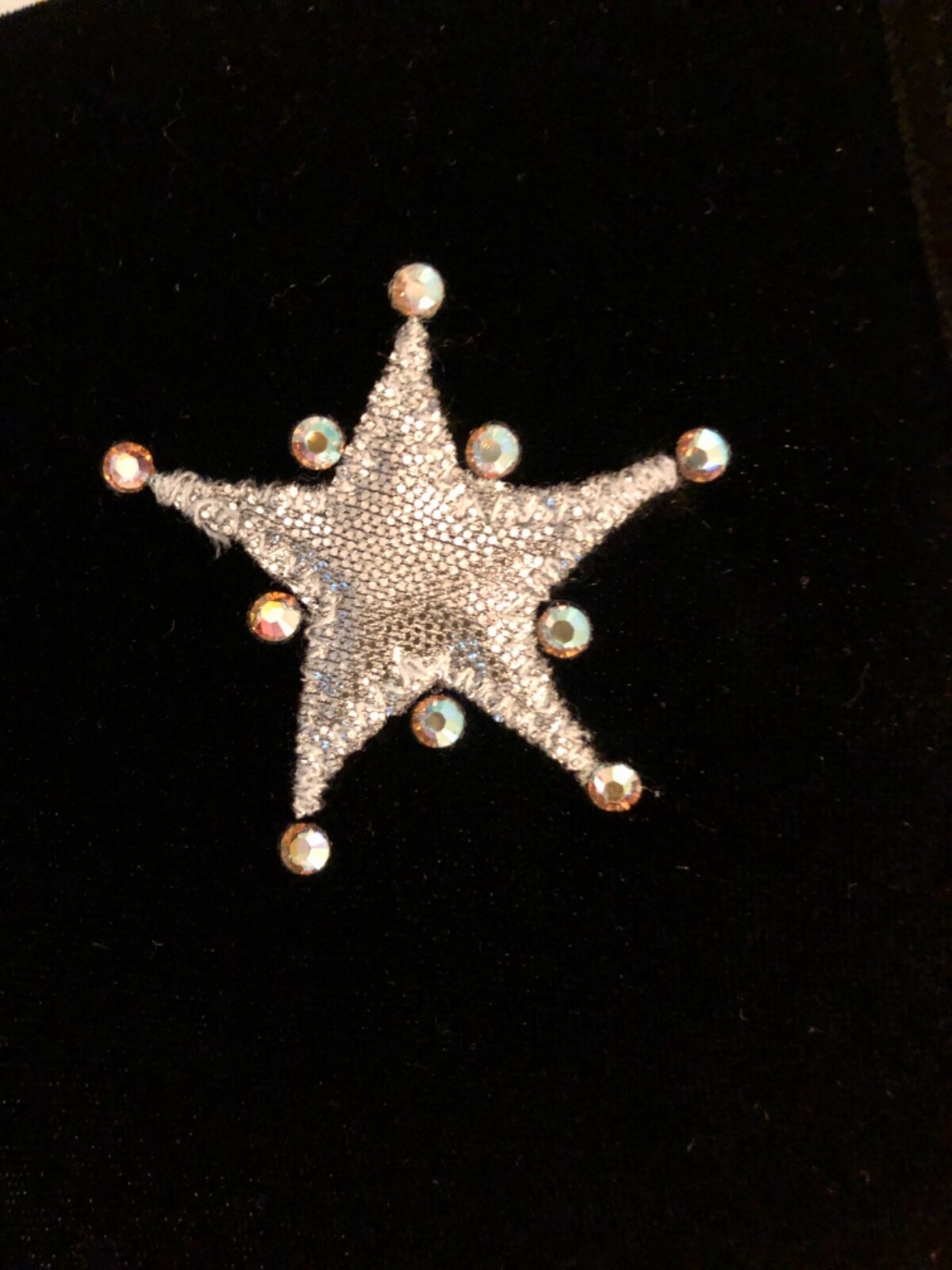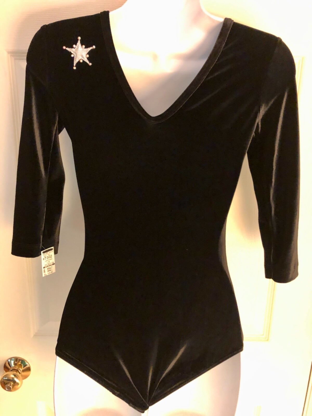 как выглядит GK LgSLV LADIES SMALL BLACK VELVET STAR FOIL JA GYMNASTICS DANCE LEOTARD Sz AS фото