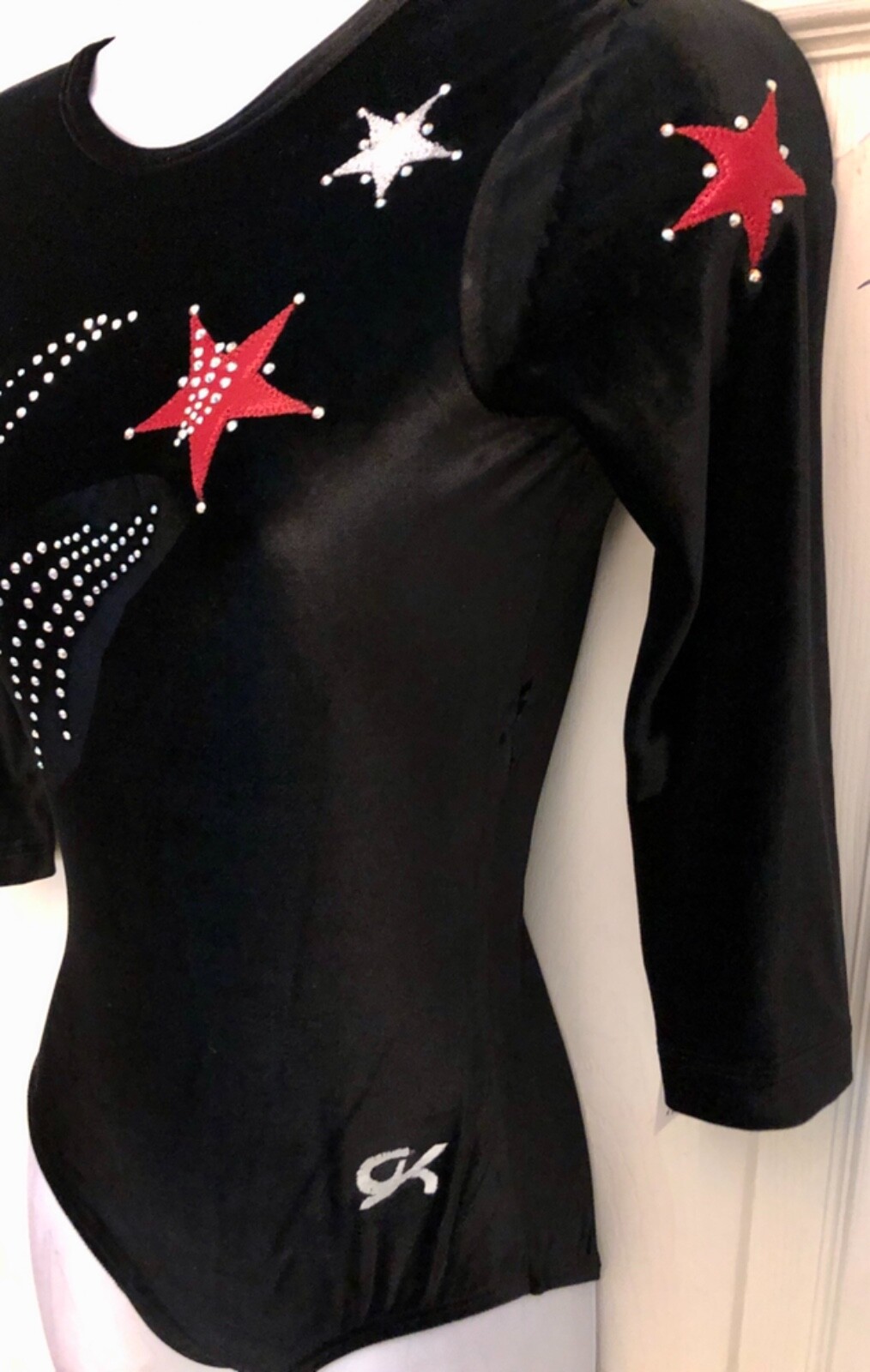 GK LgSLV LADIES SMALL BLACK VELVET STAR FOIL JA GYMNASTICS DANCE LEOTARD Sz AS