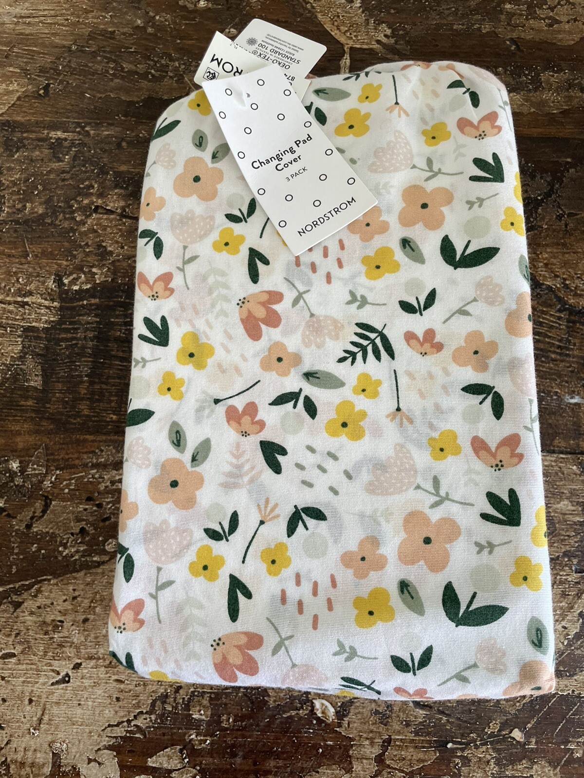 Nordstrom Baby Changing Pad Cover Assorted 3 Pack Floral Solid Print, NWT