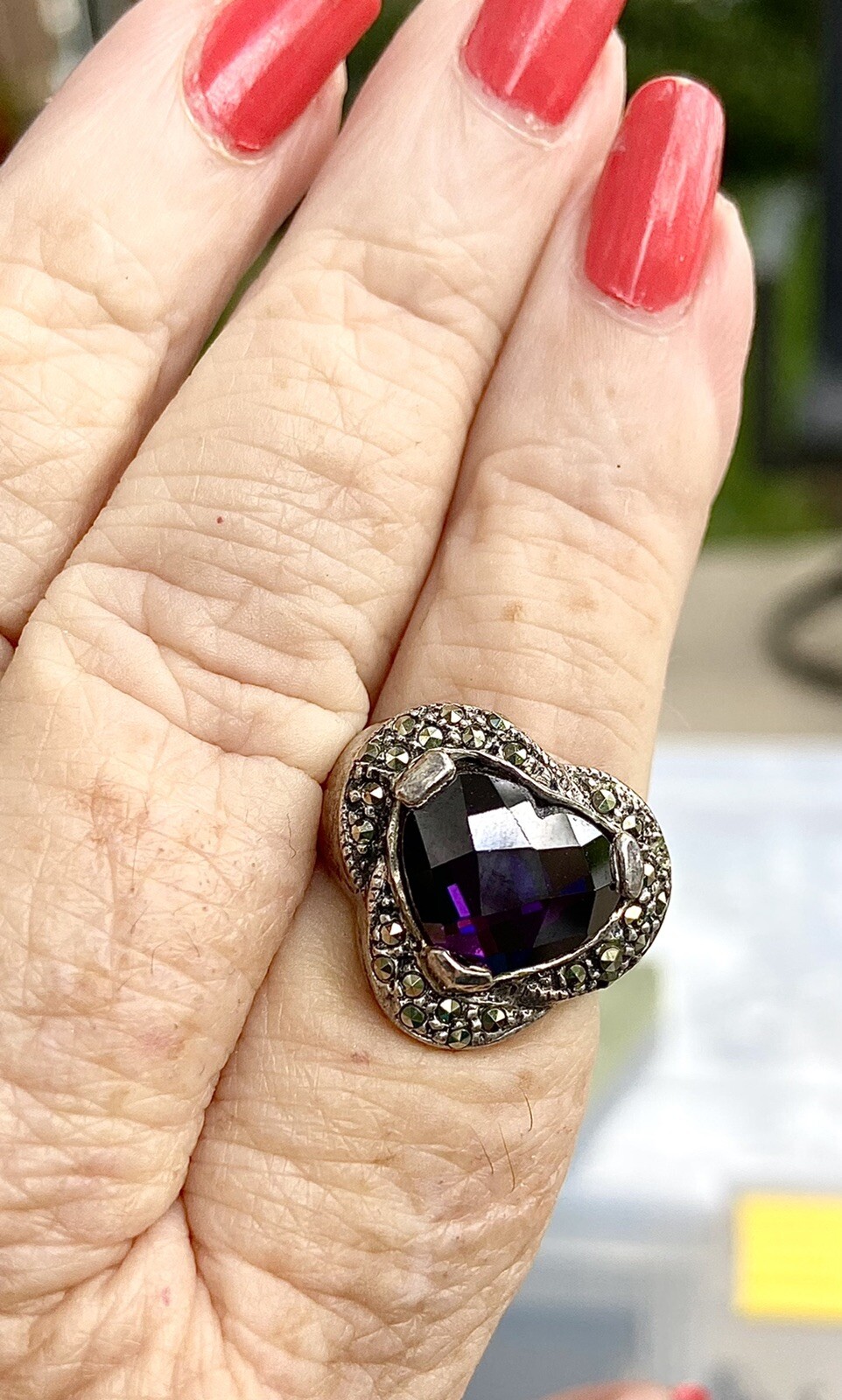 как выглядит Sterling Marcasite Amethyst Ring. Size 7 Approximate фото