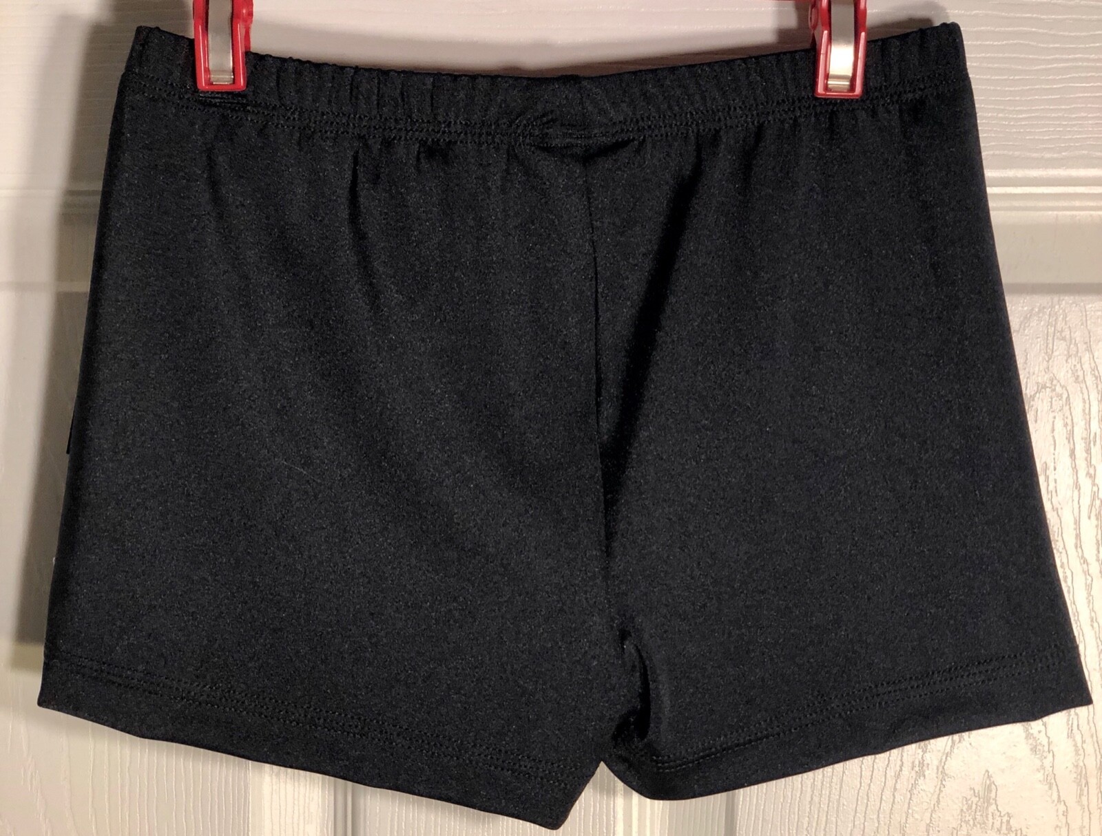 как выглядит GK CHEER MICRO MINI WORKOUT SHORTS ADULT MEDIUM BLACK NYLON/SPANDEX JA AM NWT фото