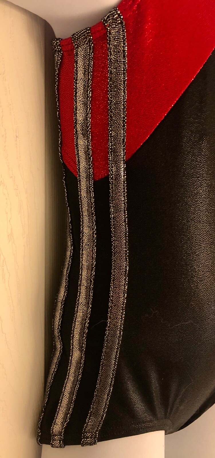 как выглядит ADIDAS TANK GK LEOTARD CHILD X-SMALL RED BLACK FOIL STRIPES GYMNASTIC DANCE CXS фото
