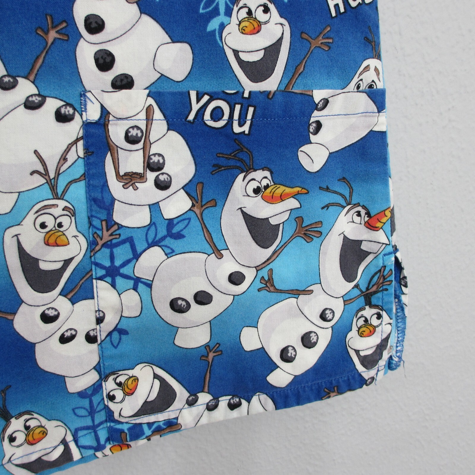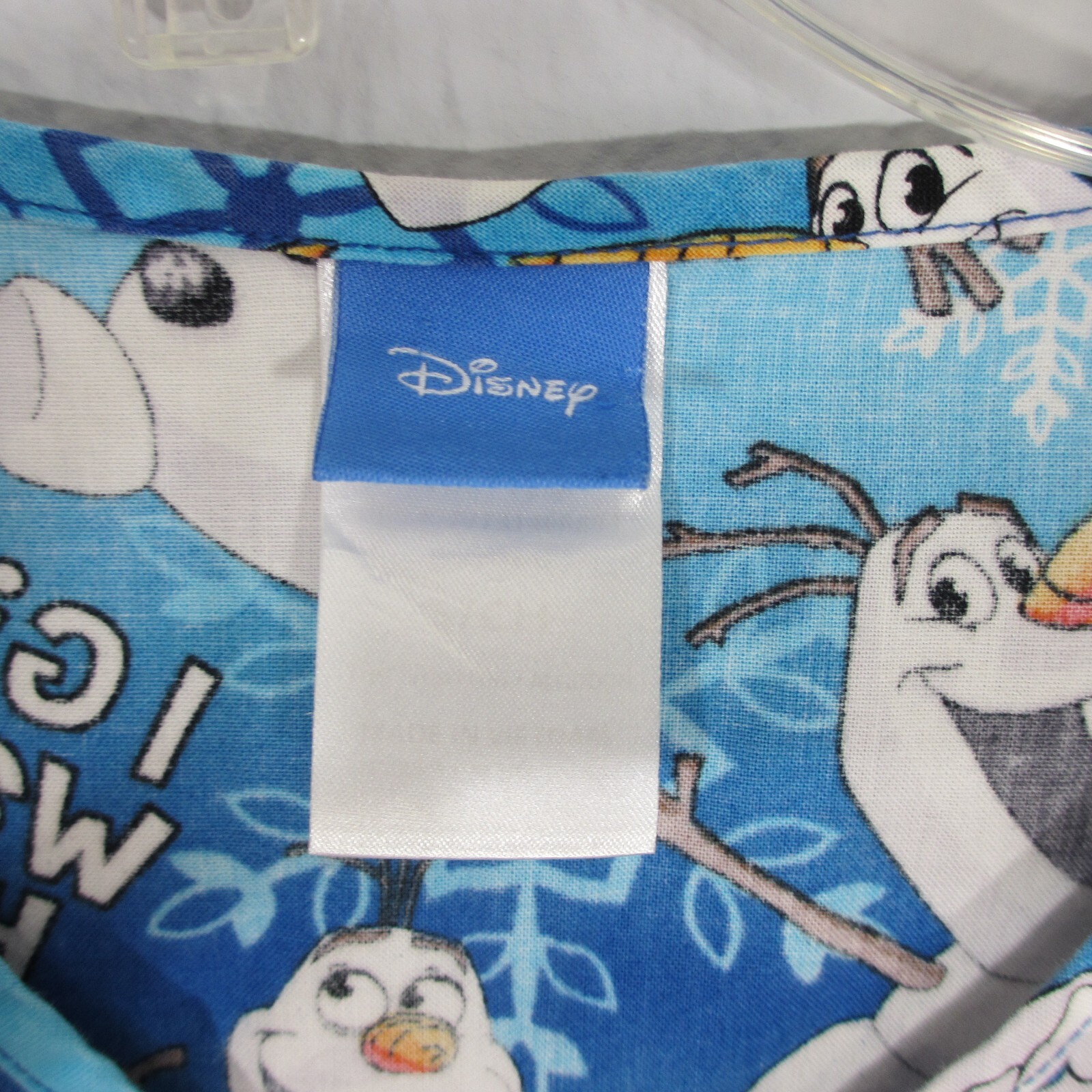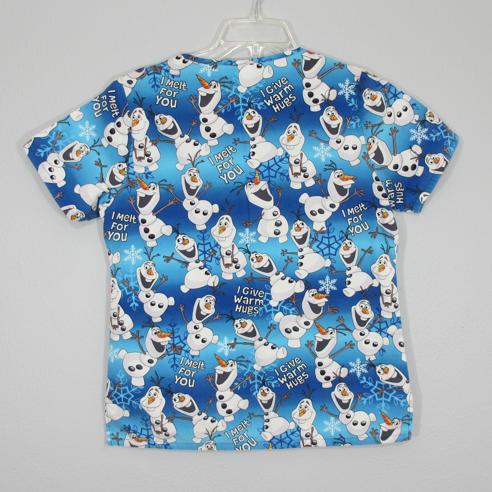 Disney Women's Scrub Top Frozen Olaf I Give Warm Hugs Melt for You Blue Small
