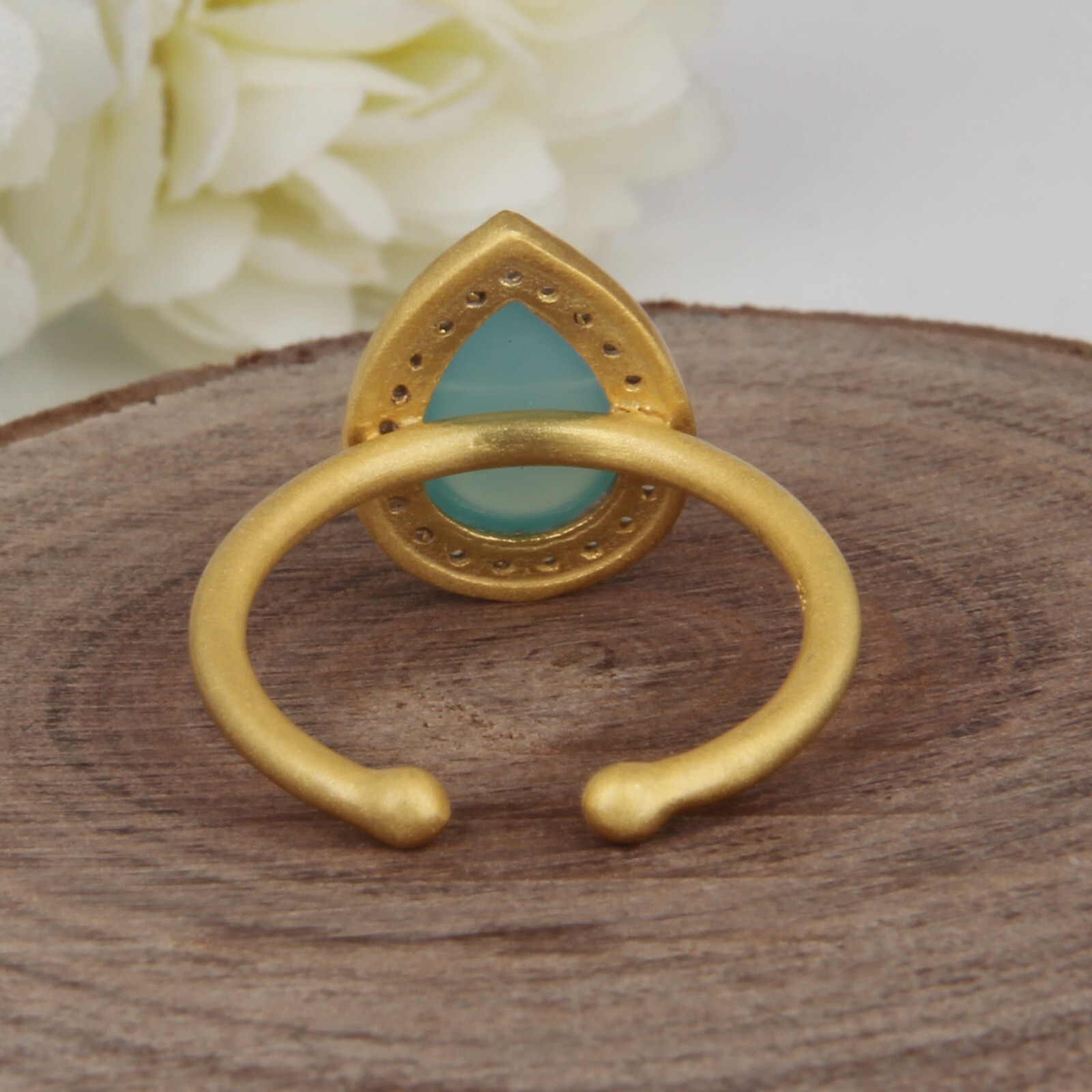 Teardrop Aqua Chalcedony 18k Gold Plated 925 Silver Ring With CZ Engagement Ring