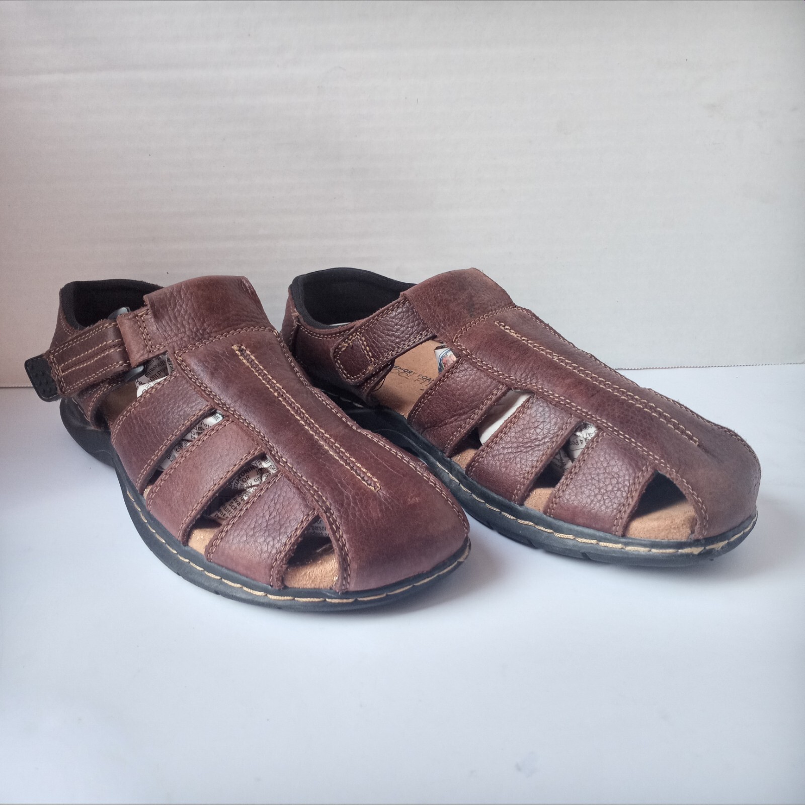 как выглядит Dr. Scholl s Gaston Brown Leather Hook Loop Fisherman Sandals Men US 11M B 4 фото