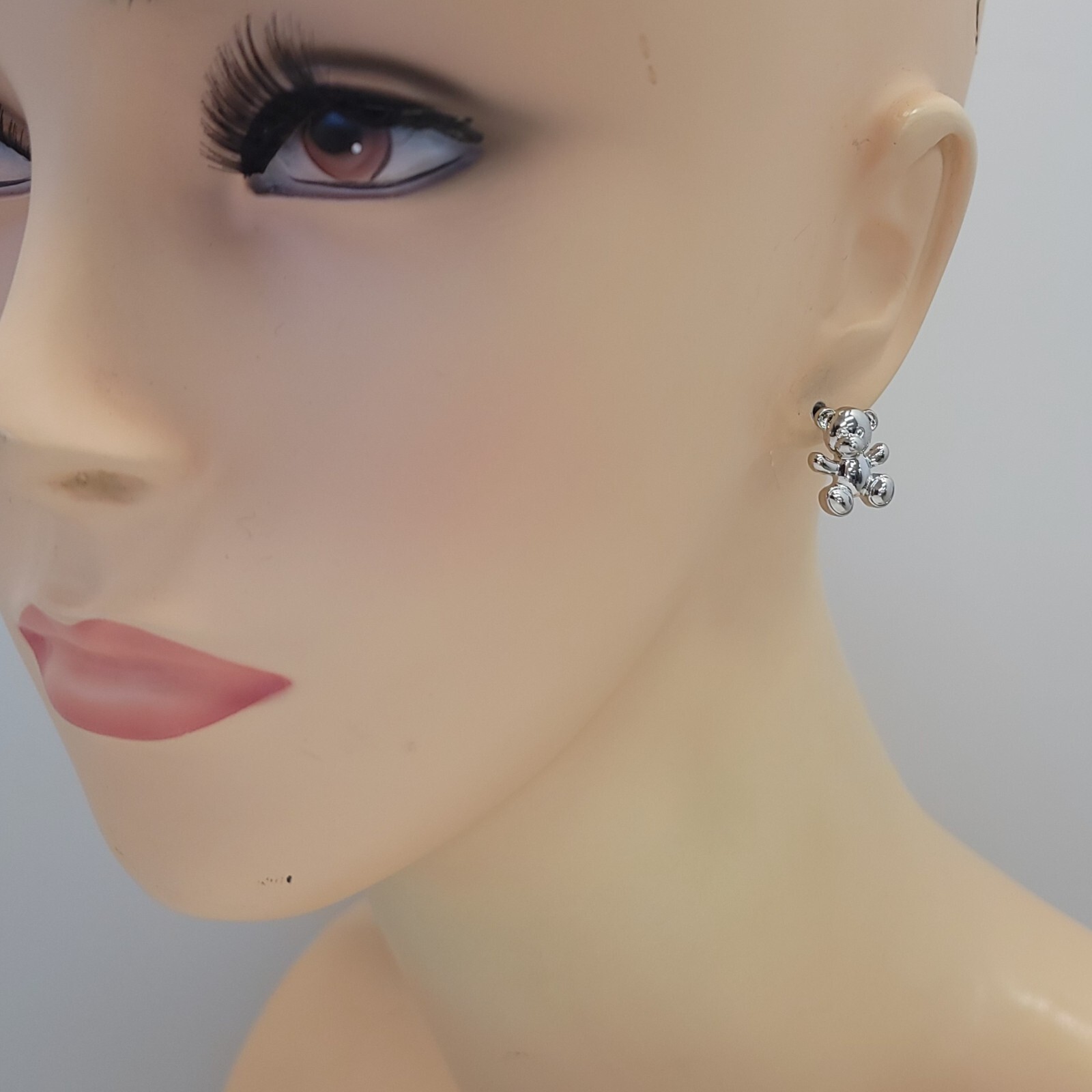 как выглядит E0878 Silver Tone Metal Dainty Teddy Bear Design Mini Stud Style Earrings фото