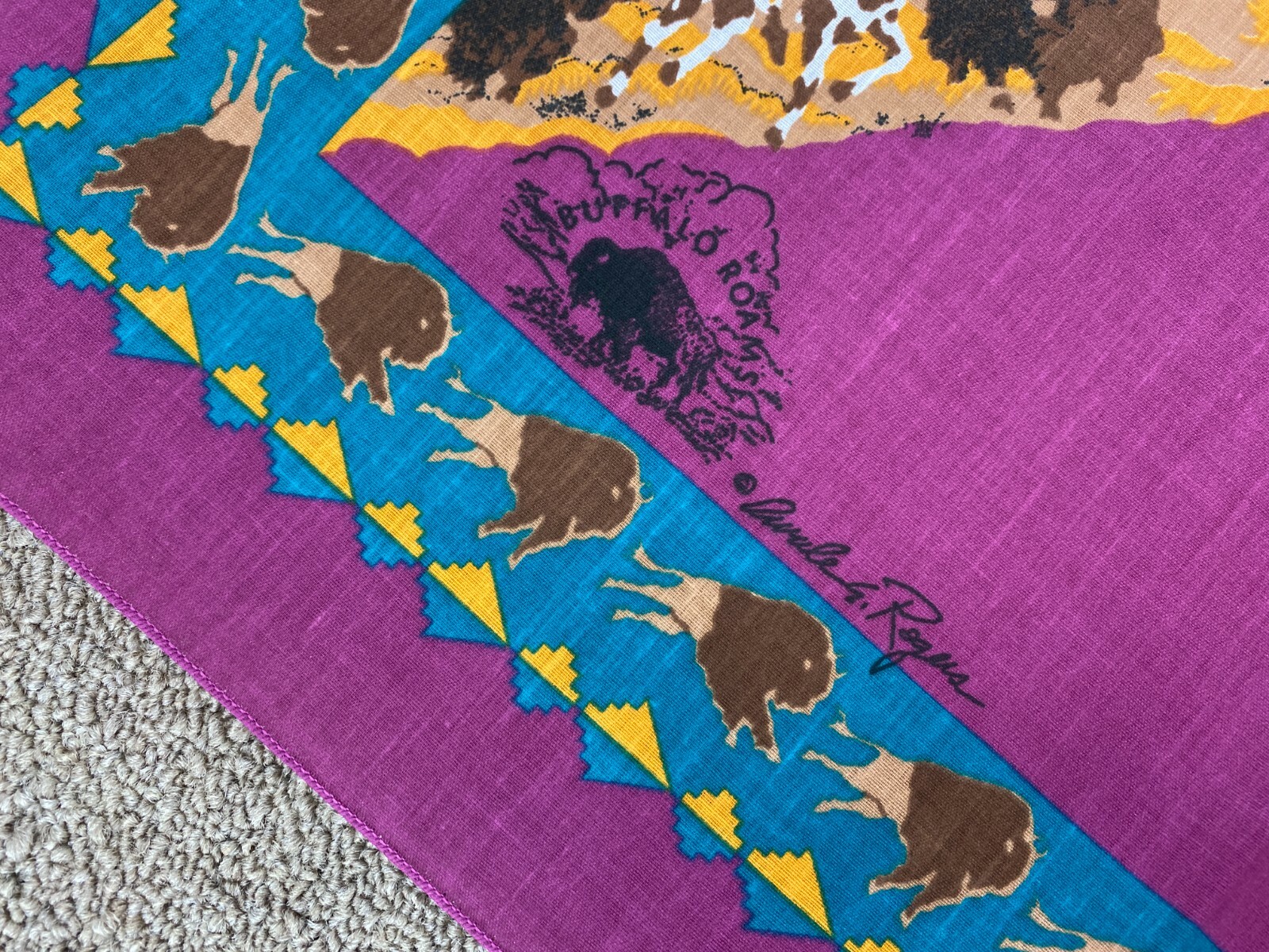 Native American Bandana Handkerchief Buffalo Purple Indian Navajo Springs VTG