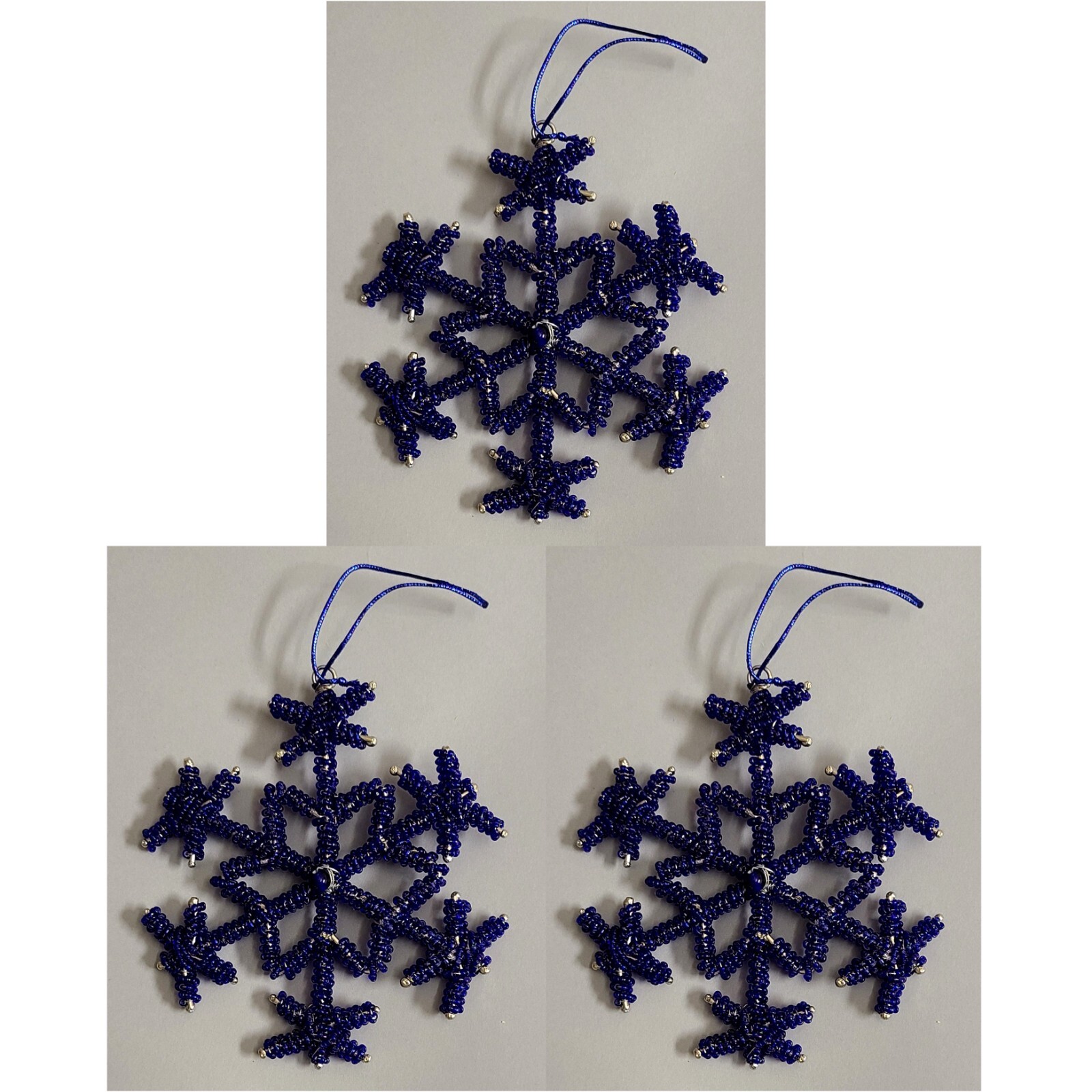 Snowflake Hanging Ornament Blue Glass Beads on Metal 4.5D Set/3 FREE SHIPPING