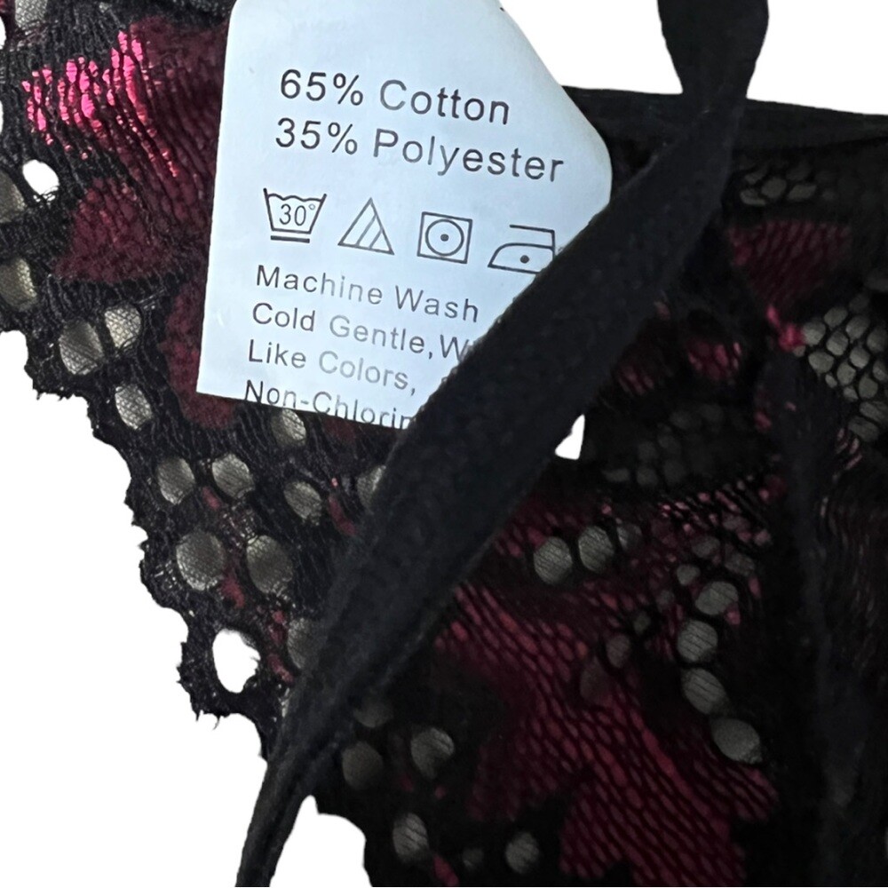как выглядит NWT Black and Red Lace Garter Lingerie Set Bra, Garter Belt and Panty Size Large фото