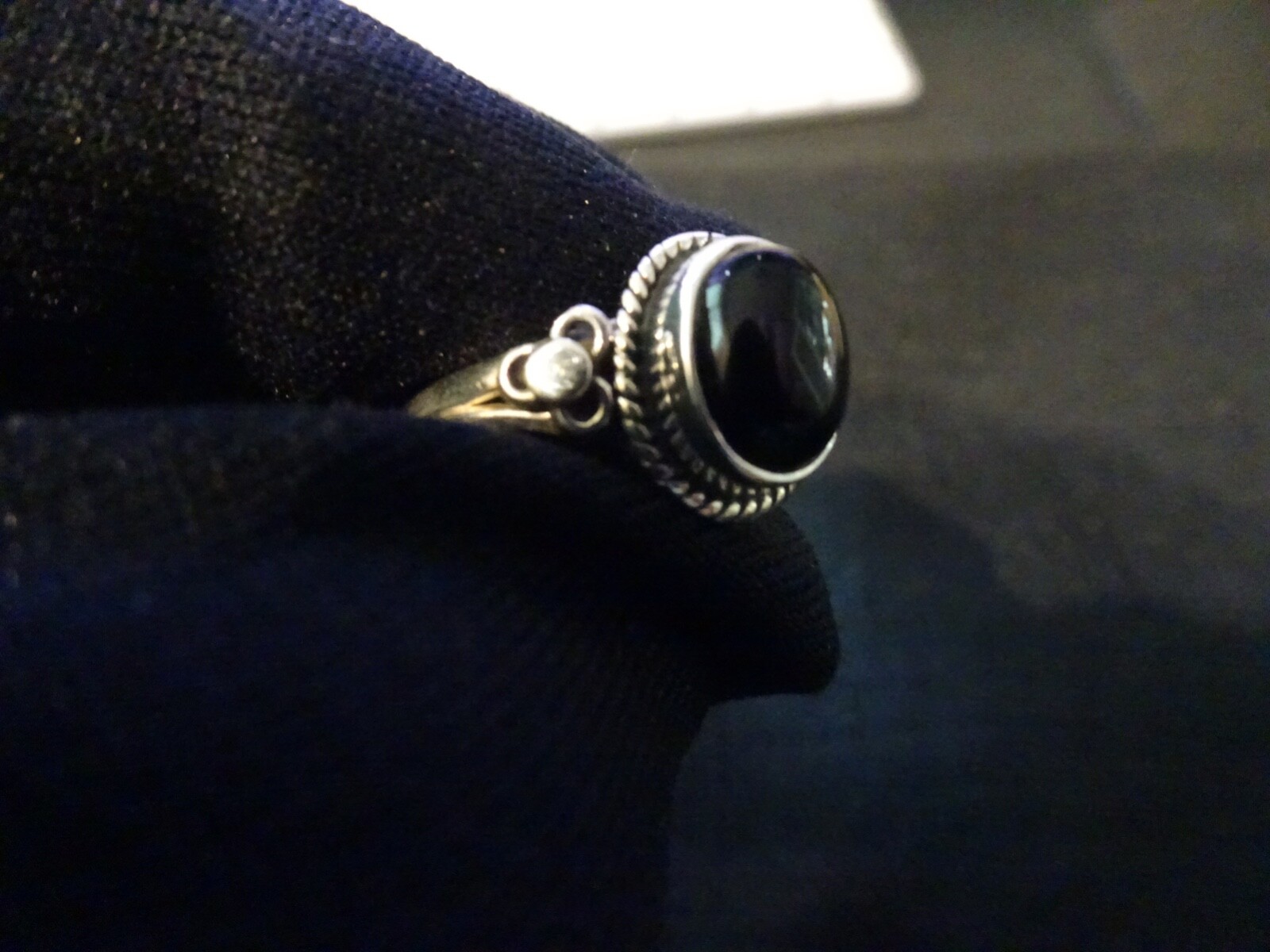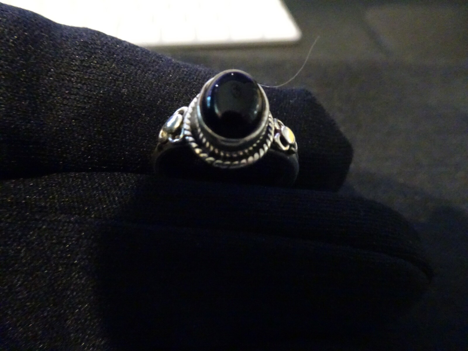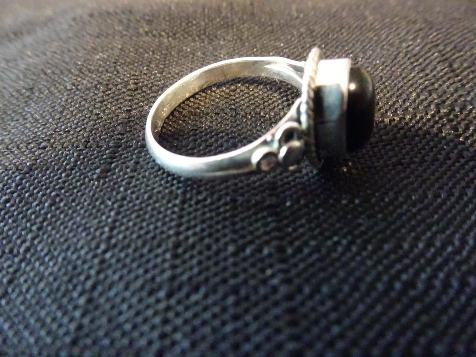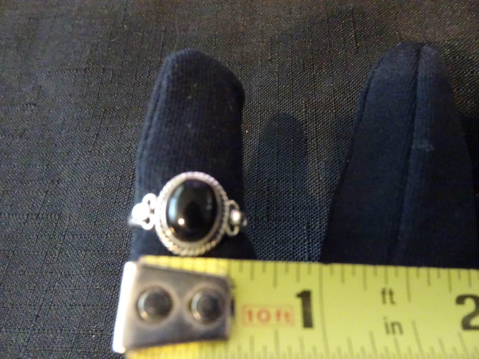как выглядит 631--VINTAGE STERLING SILVER BLACK ONYX RING-925--SIZE-8 фото