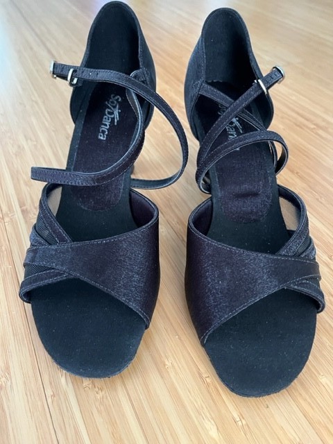 как выглядит BALLROOM LADYS Shoe So DANCA 162 S. 9L W, 9.5L M Mesh Strp BLK heel 2,5" фото