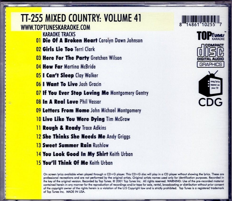 Top Tunes Karaoke CD G - TT255 Pop Hits Vol. 41