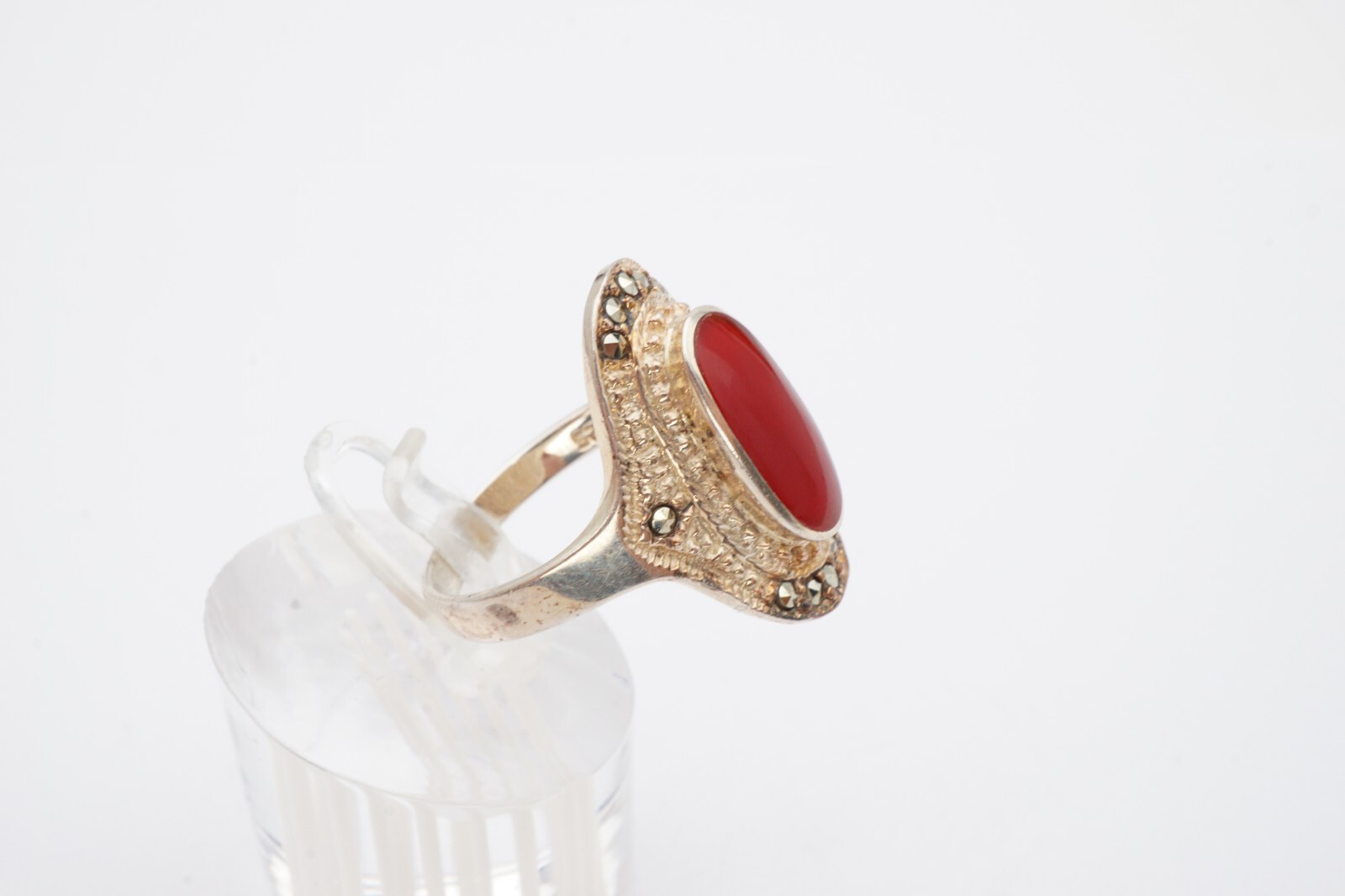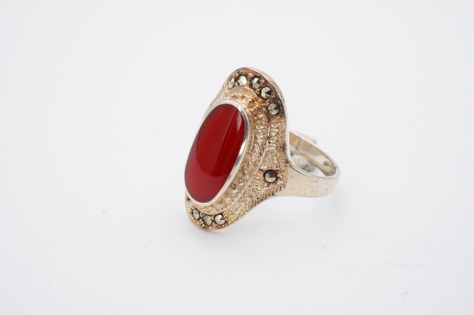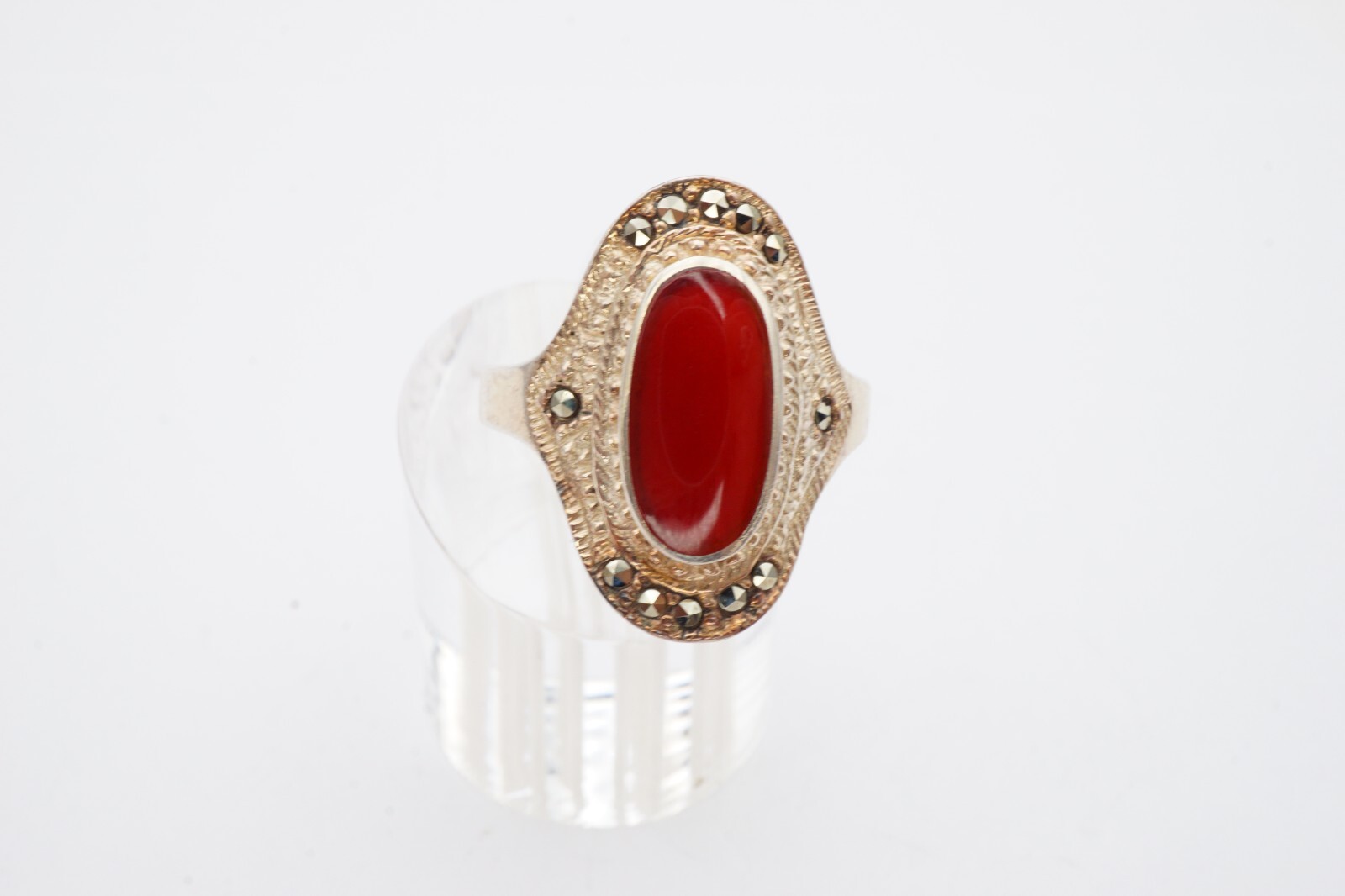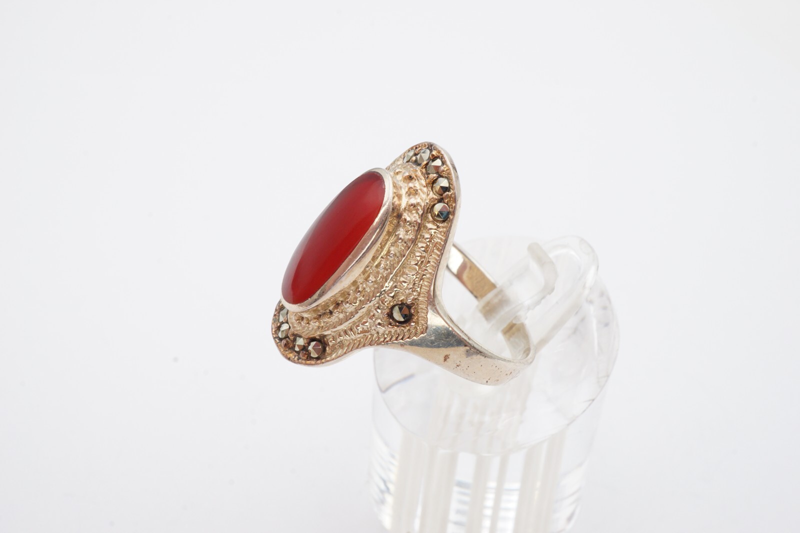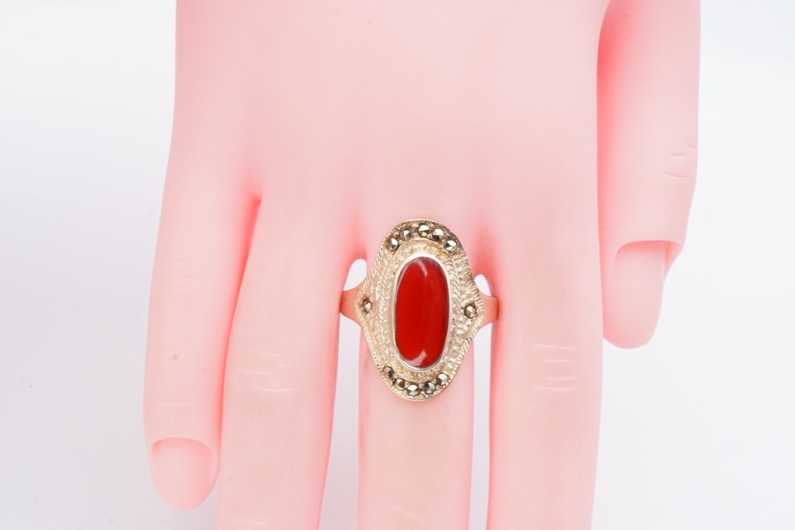 как выглядит Vintage Sterling Silver 925 Carnelian Marcasite Ring Size 9.25 NF фото