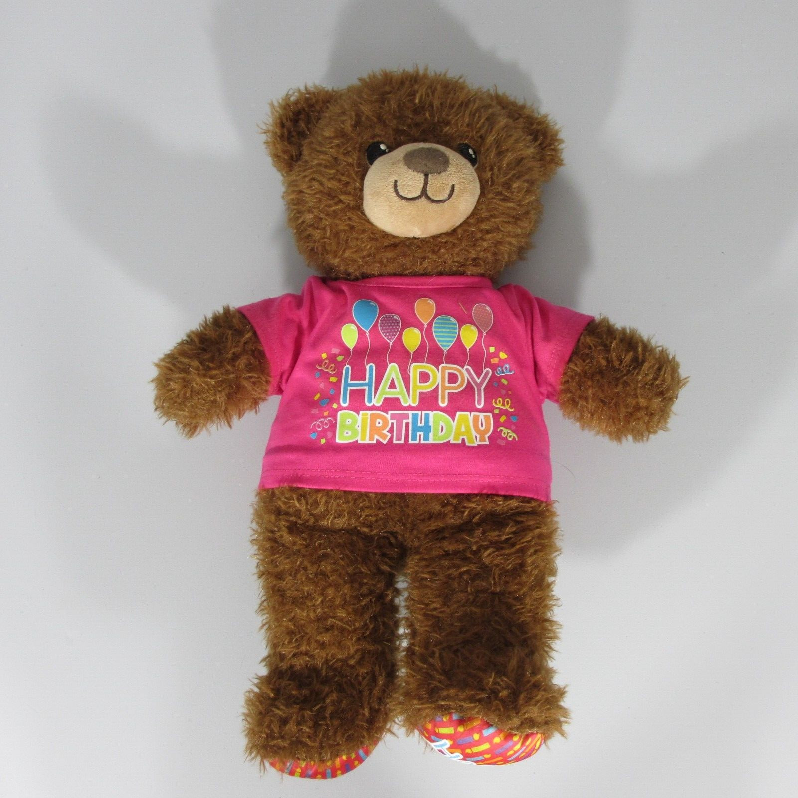 BAB Build a Bear Happy Birthday Bear 16 inch Plush Stuffed Teddy Pink Shirt