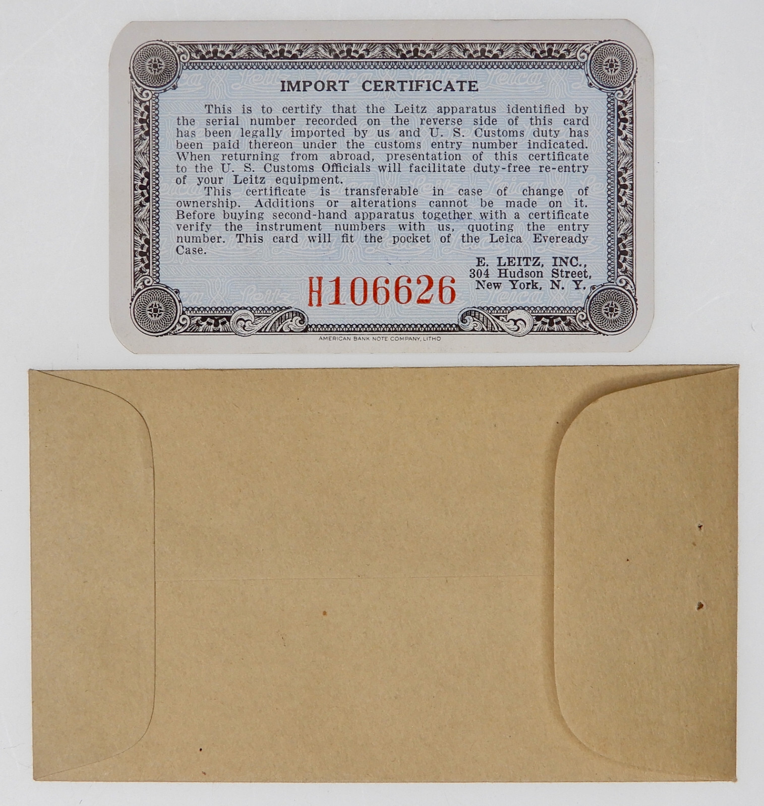 Import Certificate of Leica 50mm f2 Summitar 716799 ............. Minty