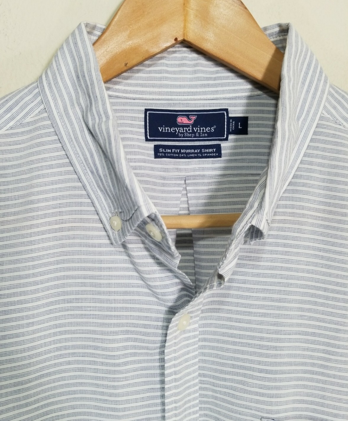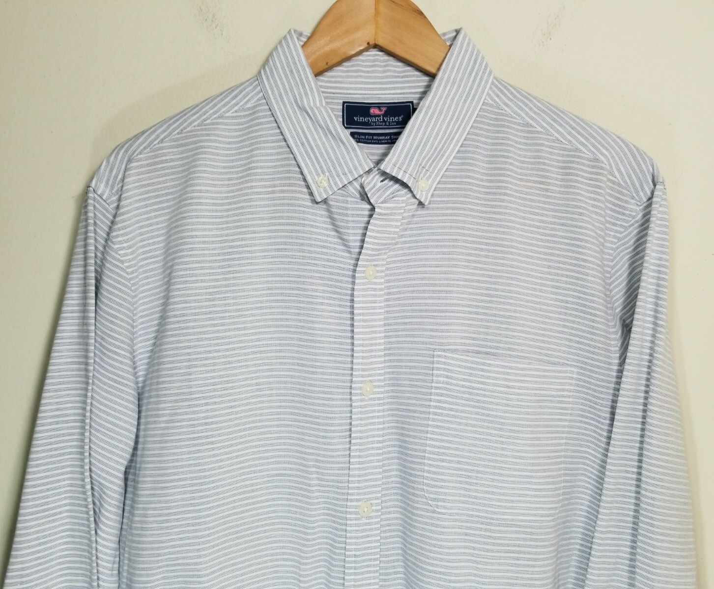 Vineyard Vines Men's Striped Button Shirt Slim Fit Murray Linen Blend Size Large