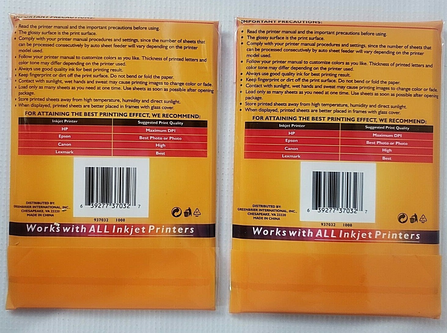 Lot of 2 Premium Photo Paper 5760dpi 20 Sheets of Size 4x 6 NEW Sealed