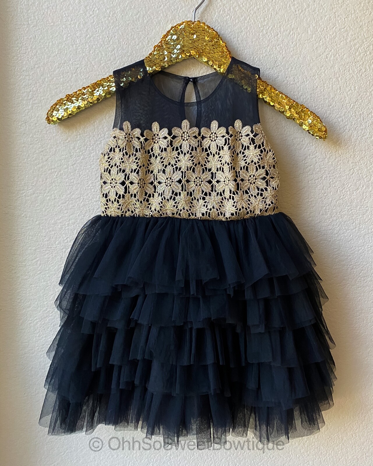Black Tulle Dress 4T - Black and Gold Tulle Dress for 4 Year Old Girls