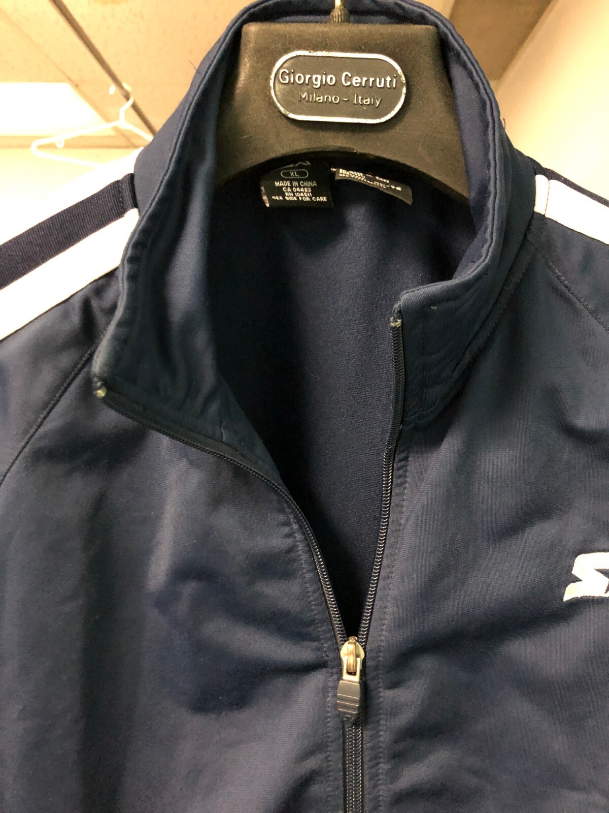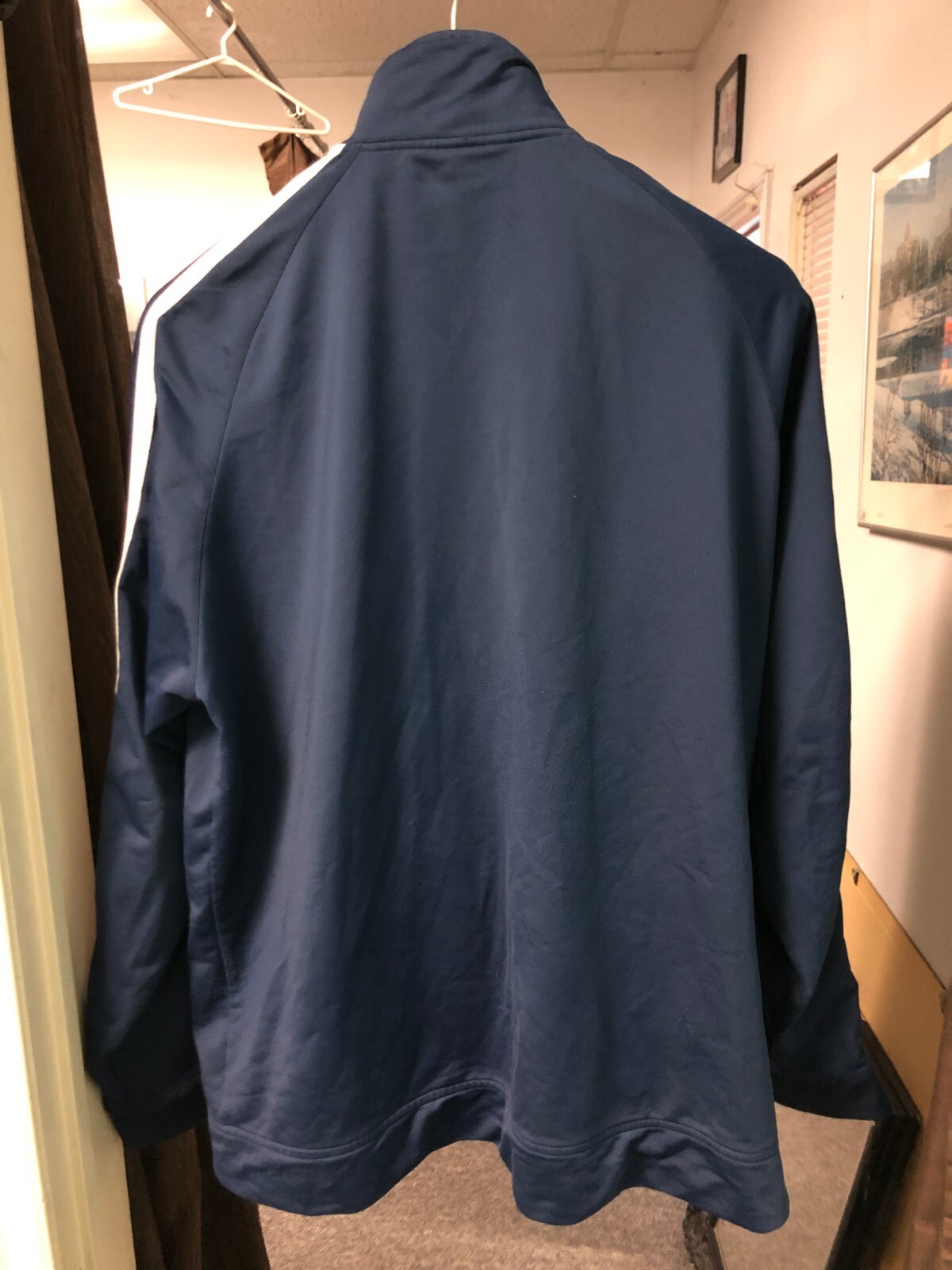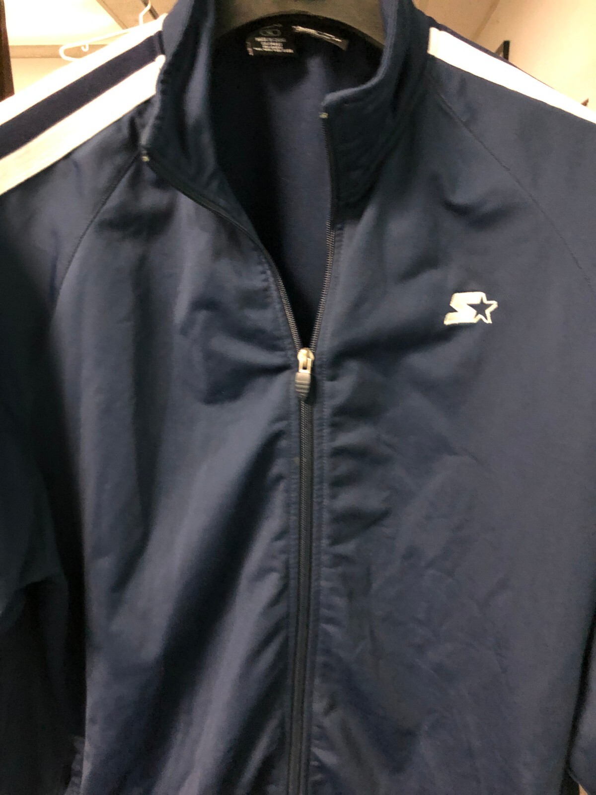 как выглядит ORIGINAL 1990S USED STARTER TRACK TOP MENS XL NAVY BLUE WHITE STRIPES SPORTY фото