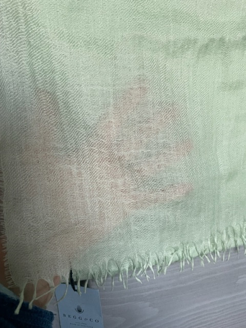 BNWT Begg and Co Women's Cashmere/Silk Staffa Powder Green Scarf Shawl Scotland